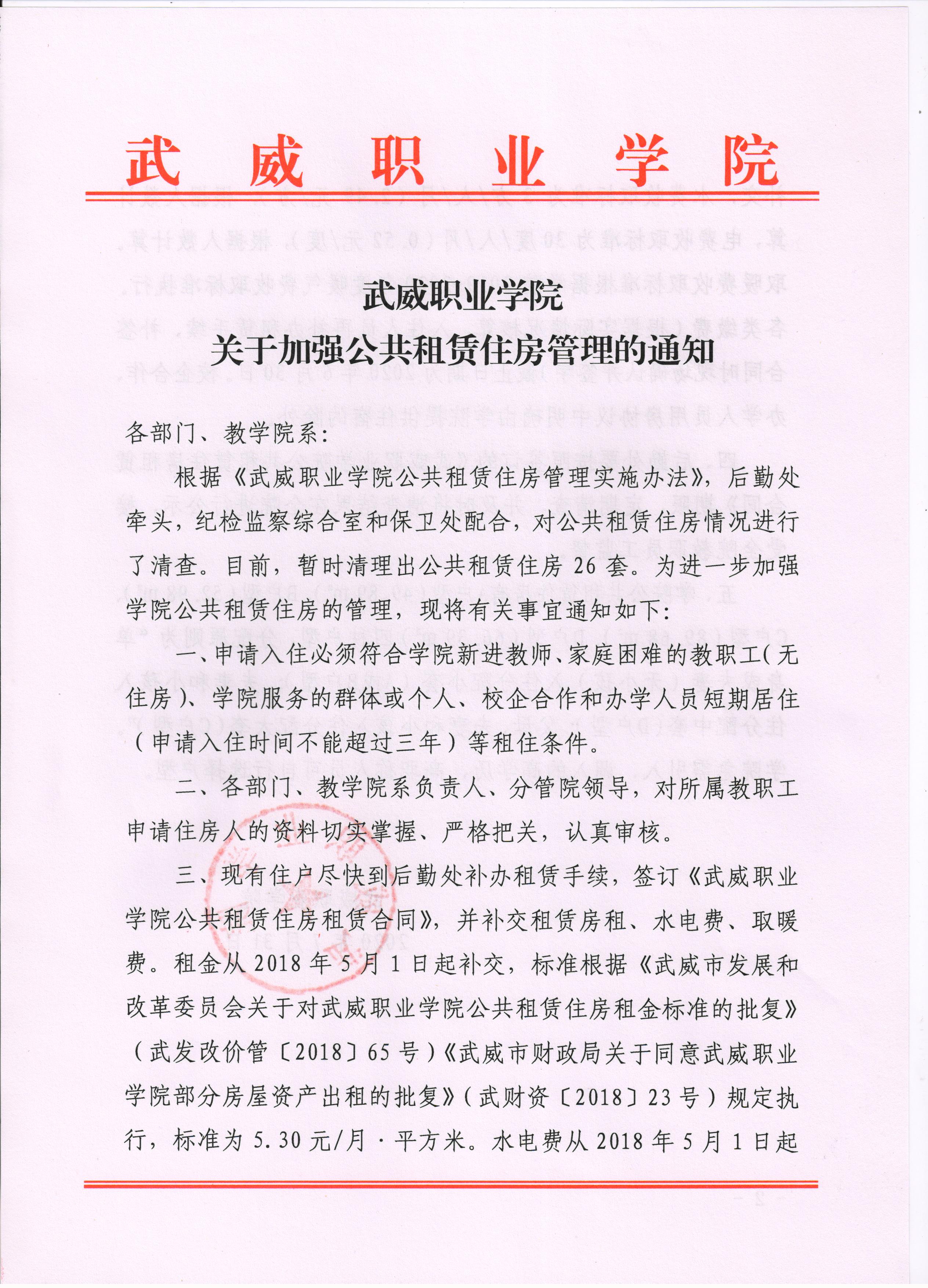 《武威職業(yè)學(xué)院關(guān)于加強公共租賃住房管理的通知》
