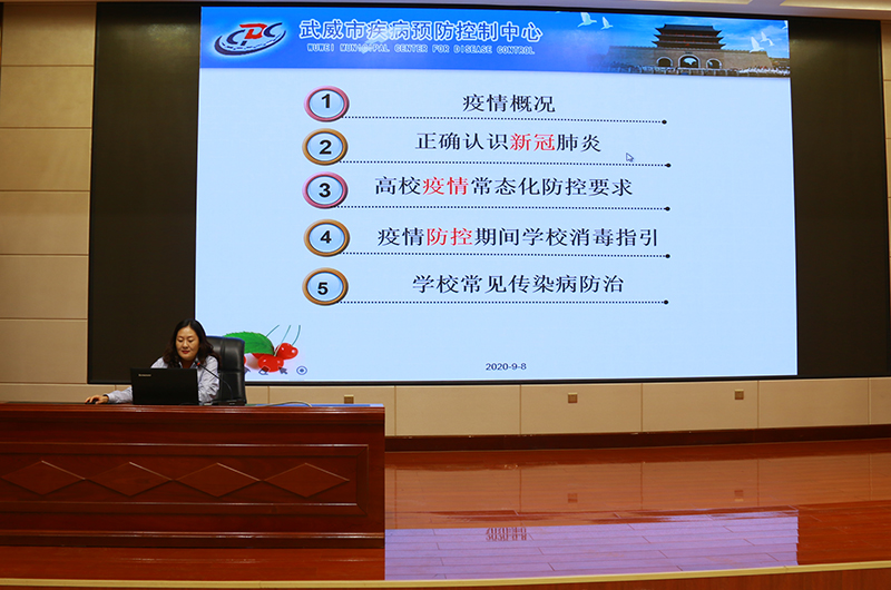 演練結(jié)束后,武威市疾控中心應(yīng)急辦公室主任、副主任醫(yī)師馬艷在大學(xué)生活動(dòng)中心菁英廳做了秋季開學(xué)疫情防控知識(shí)、技能培訓(xùn)講座。