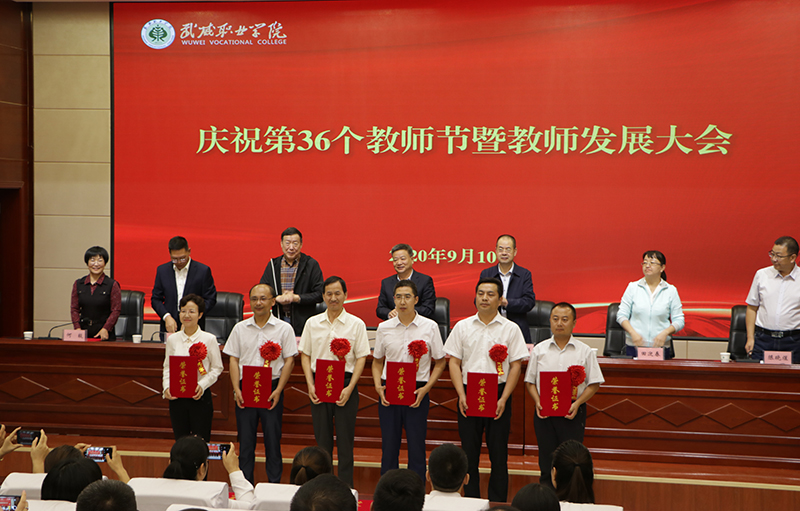 學(xué)院領(lǐng)導(dǎo)分別宣讀了《武威職業(yè)學(xué)院關(guān)于表彰獎(jiǎng)勵(lì)2020年度優(yōu)秀教師、優(yōu)秀教育工作者的決定》《關(guān)于表彰學(xué)院2020年“教書育人楷?!鲍@得者的決定》《關(guān)于表彰學(xué)院2020年“我最喜愛(ài)的老師”獲得者的決定》《武威職業(yè)學(xué)院關(guān)于表彰獎(jiǎng)勵(lì)語(yǔ)言文字推廣先進(jìn)個(gè)人的決定》和《關(guān)于評(píng)定2020年院級(jí)“教學(xué)名師”“教學(xué)能手”“教學(xué)新秀”的決定》《關(guān)于聘任2020年院級(jí)專業(yè)(學(xué)科)帶頭人的決定》《武威職業(yè)學(xué)院關(guān)于評(píng)定2020年院級(jí)骨干教師的決定》。楊存忠教授和學(xué)院領(lǐng)導(dǎo)分別為獲獎(jiǎng)?wù)哳C發(fā)榮譽(yù)證書。