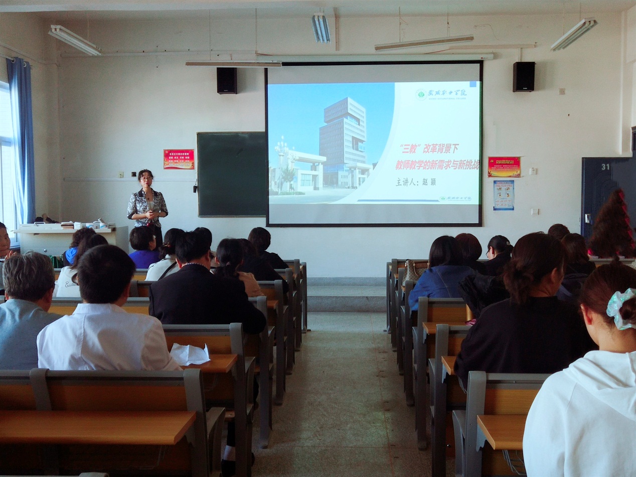 赴揚(yáng)州參加學(xué)習(xí)的護(hù)理系基礎(chǔ)教研室教師趙穎就8月16日至22日期間的學(xué)習(xí)內(nèi)容向大家作了詳細(xì)匯報(bào)。此次匯報(bào)的內(nèi)容主要包括題目解析和“三教”改革的對(duì)策與舉措兩大部分。趙穎借助PPT,通過生動(dòng)的語言,詳實(shí)的例子,結(jié)合我系實(shí)際情況,分享交流有關(guān)《“三教”改革背景下教師教學(xué)的新需求與新挑戰(zhàn)》的學(xué)習(xí)內(nèi)容,傳遞了職業(yè)教育改革和發(fā)展信息化發(fā)展的方向,介紹了“三教”改革背景下教師教育教學(xué)面對(duì)的新要求、新挑戰(zhàn)以及教師如何應(yīng)對(duì)這些挑戰(zhàn)并將自己的學(xué)習(xí)心得體會(huì)與大家作了分享。