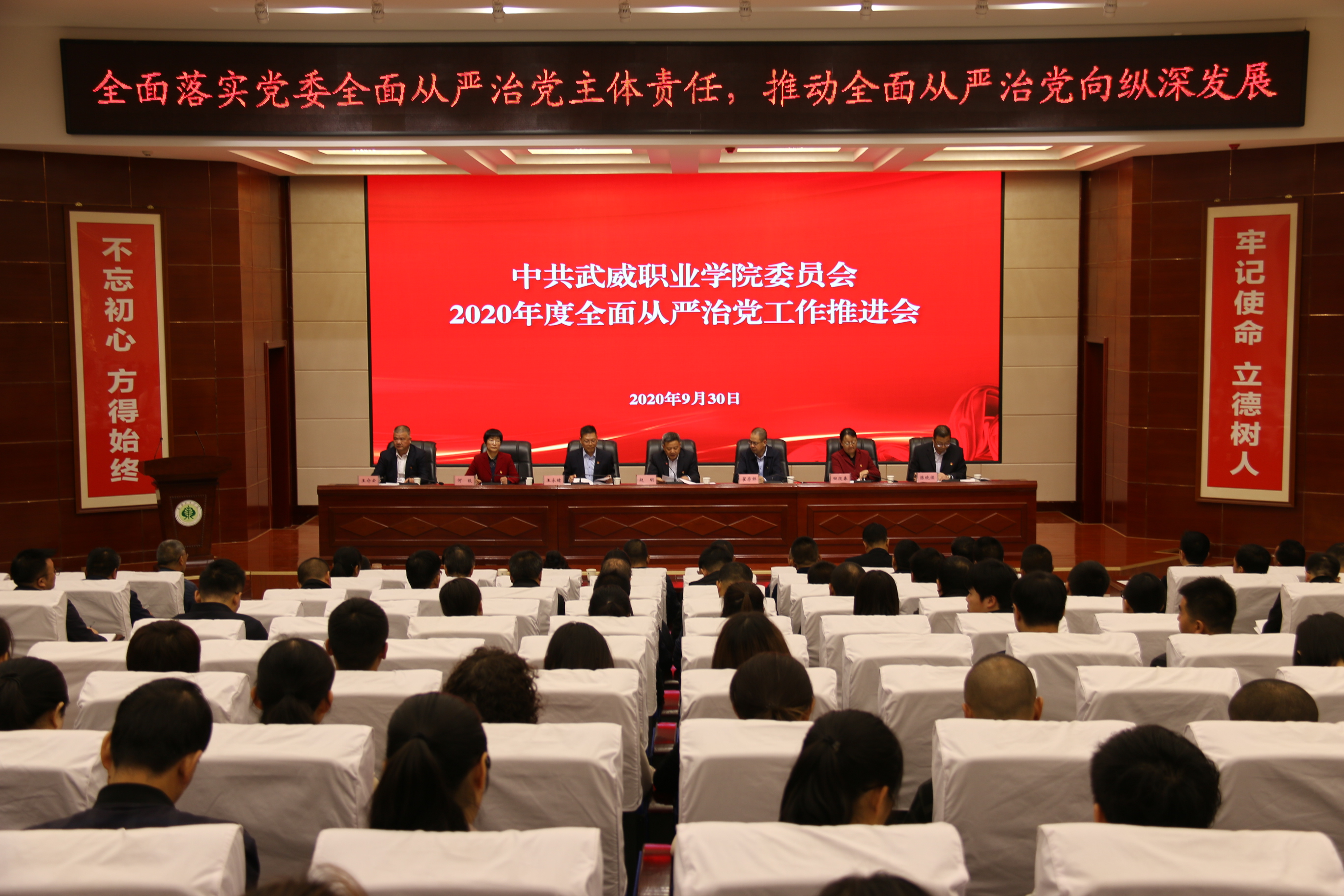 9月30日上午,學(xué)院2020年度全面從嚴(yán)治黨工作推進(jìn)會(huì)在大學(xué)生活動(dòng)中心菁英廳召開,學(xué)院領(lǐng)導(dǎo)班子成員,各基層黨組織書記及支委班子成員、專職組織員,各部門負(fù)責(zé)人及師生黨員代表共計(jì)220人參加了會(huì)議。會(huì)議由學(xué)院黨委書記、院長(zhǎng)趙明主持。會(huì)議套開了學(xué)院2020年下半年宣傳思想工作、意識(shí)形態(tài)工作和統(tǒng)戰(zhàn)工作推進(jìn)會(huì)。