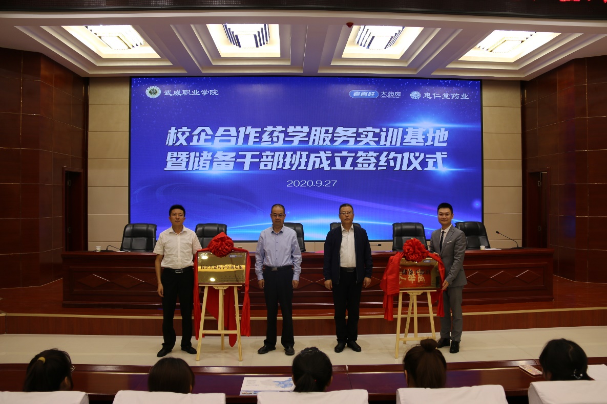 2020年9月27日上午,學(xué)院與老百姓集團(tuán)﹒蘭州惠仁堂藥業(yè)連鎖有限責(zé)任公司“校企共建藥學(xué)實(shí)訓(xùn)基地”暨“老百姓儲備干部班”成立簽約儀式在大學(xué)生活動中心菁英廳舉行。儀式由藥學(xué)系主任魏潤明主持,學(xué)院黨委副書記翟存祥、老百姓集團(tuán)總部和蘭州惠仁堂藥業(yè)公司相關(guān)領(lǐng)導(dǎo)出席,藥學(xué)系教師代表和2019級藥學(xué)、中藥學(xué)專業(yè)學(xué)生代表共計220人參加了簽約儀式。