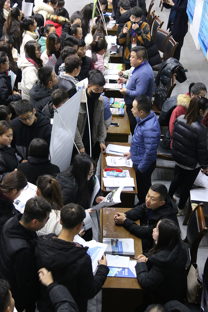 此次招聘會,有118家企業(yè)到場參會,參加招聘的企業(yè)涵蓋教育培訓、機械機電、能源化工、藝術設計、建筑房地產、商品貿易、金融證券、信息技術、文化服務等類別,共計提供崗位2100多個。招聘會秩序井然、人頭攢動。畢業(yè)生們手持簡歷和就業(yè)三方協議穿梭于各招聘展位與招聘單位交流,招聘單位不遺余力向畢業(yè)生們積極推介。招聘會結束后,招聘單位在各系進行了深入宣講和面試。學院2020屆畢業(yè)生共有3329名,除了醫(yī)藥衛(wèi)生類畢業(yè)生尚在實習環(huán)節(jié)外,其余學生均參加了招聘“雙選”。經初步統計,此次招聘會達成了就業(yè)意向1200多名,有623人在招聘會現場簽訂了就業(yè)三方協議。