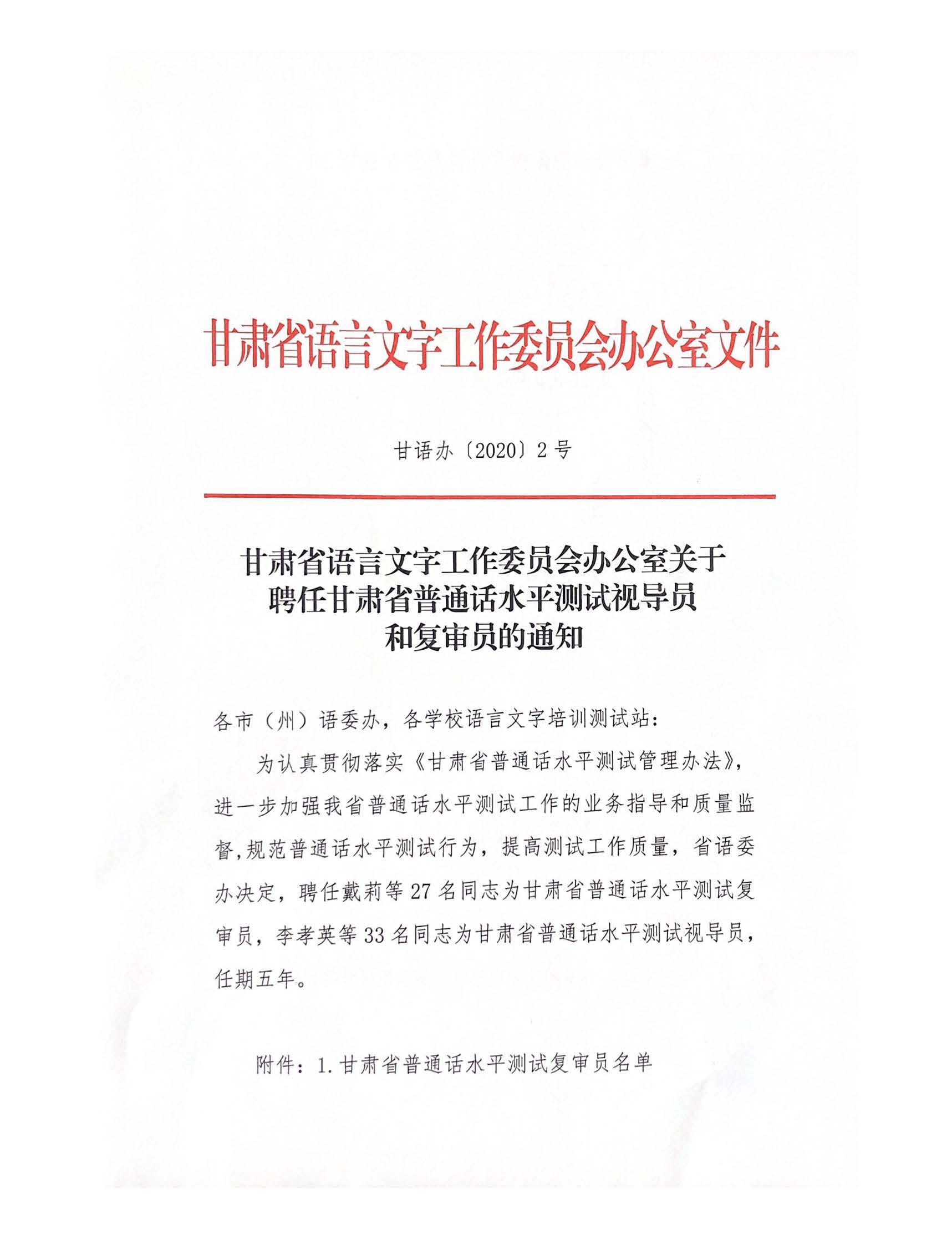 我院護(hù)理系趙穎教授獲得“甘肅省普通話測試復(fù)審員”資格