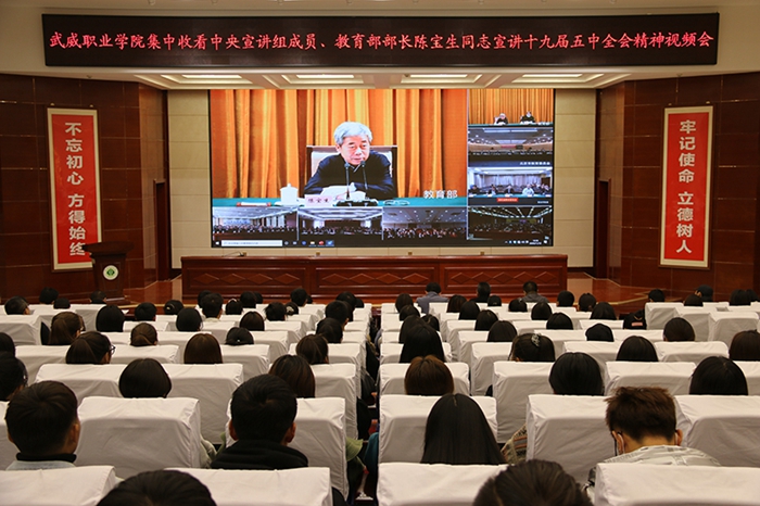 武威職業(yè)學(xué)院組織黨員干部和師生觀看教育部黨組書記、部長陳寶生宣講十九屆五中全會(huì)精神