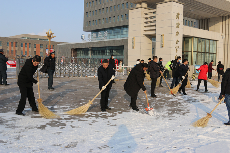 12月1日,我市出現(xiàn)降雪、降溫天氣,致使學院道路積雪結(jié)冰,給學院師生出行帶來不便。2日早上,學院領(lǐng)導及部分師生一起在校園內(nèi)外道路清掃積雪、鏟除結(jié)冰,為師生和周圍市民出行提供便利。