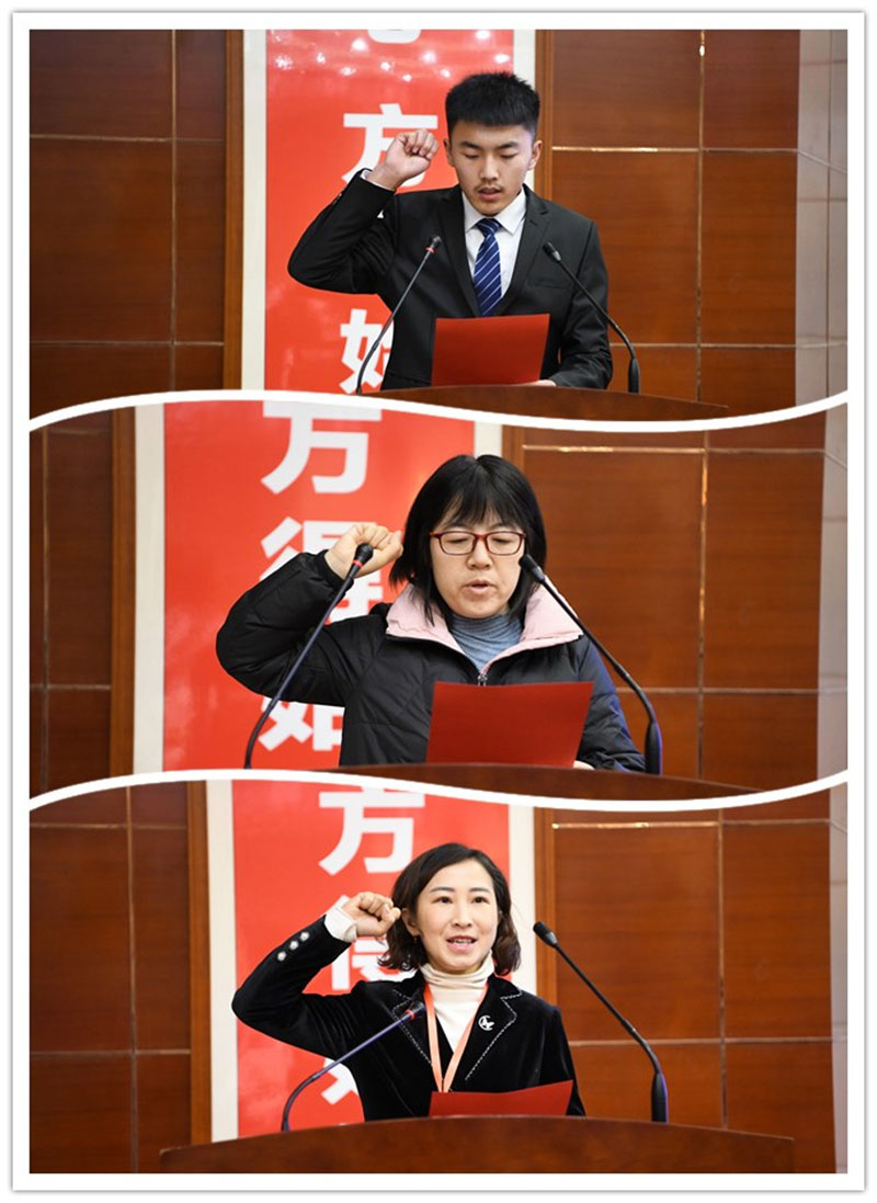 參賽學(xué)生代表吳德磊同學(xué),參賽教師代表張玉梅,裁判員代表趙曉麗分別在開(kāi)幕式上宣誓,要遵守比賽規(guī)則,嚴(yán)格標(biāo)準(zhǔn)、公正評(píng)分,確保比賽安全順利進(jìn)行。