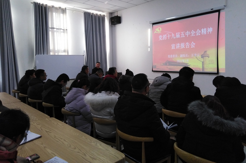 為深入學習貫徹黨的十九屆五中全會精神。1月4日,學院黨委委員、副院長王守云同志在大學生活動中心201會議室為教學管理第一黨支部和教學管理第二黨支部全體黨員講授了學習貫徹黨的十九屆五中全會精神專題黨課。