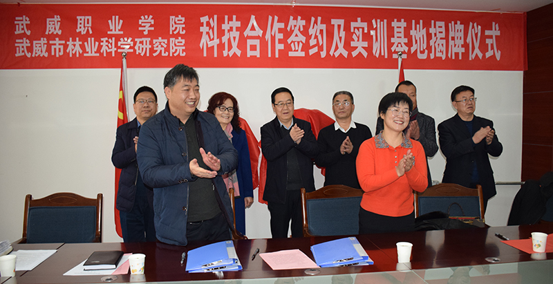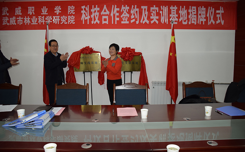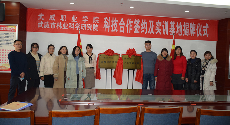 為了全面落實(shí)《教育部、甘肅省人民政府關(guān)于整省推進(jìn)職業(yè)教育發(fā)展打造“技能甘肅”的意見》和“2020年全國(guó)職業(yè)教育教師企業(yè)實(shí)踐基地推進(jìn)會(huì)”等會(huì)議精神,進(jìn)一步推動(dòng)鄉(xiāng)村振興和創(chuàng)新驅(qū)動(dòng)戰(zhàn)略的實(shí)施,大力推進(jìn)生態(tài)文明建設(shè),全面提升教師的科技創(chuàng)新能力、實(shí)踐教學(xué)水平和學(xué)生的職業(yè)技能,為我院“雙高”建設(shè)添磚加瓦,1月25日上午,學(xué)院與武威市林業(yè)科學(xué)研究院舉行了科技合作協(xié)議簽約暨教師實(shí)踐基地和學(xué)生實(shí)訓(xùn)基地揭牌儀式。武威市林業(yè)和草原局黨組書記、局長(zhǎng)戴繼春,武威市林業(yè)科學(xué)研究院院長(zhǎng)張勤德,副院長(zhǎng)張強(qiáng)威、張金學(xué),學(xué)院副院長(zhǎng)何毅、教務(wù)處處長(zhǎng)仲生仁、招生就業(yè)處處長(zhǎng)蔡柱山、現(xiàn)代農(nóng)業(yè)技術(shù)系黨總支書記晏素珍、林科院專業(yè)技術(shù)人員代表和現(xiàn)代農(nóng)業(yè)技術(shù)系教師代表等出席了簽約暨揭牌儀式,林科院副院長(zhǎng)張強(qiáng)威主持儀式。