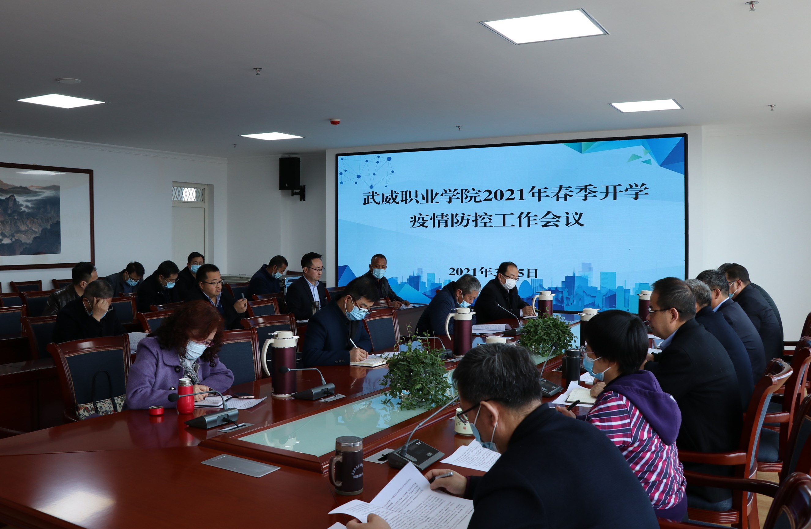趙明對做好開學工作和疫情防控工作從完善防控體系、信息互通共享、堅持健康監(jiān)測、落實返校要求、開展應(yīng)急演練、落實物資保障、加強校門管理、強化場所管控、講好“開學第一課”等九個方面提出了明確要求。要求各部門、單位要各司其職,嚴格落實責任,加強常態(tài)化疫情防控工作,加大工作力度,推進“三教”改革,加快“雙高”院校建設(shè),創(chuàng)建無煙校園,推動省級文明校園和全國文明城市創(chuàng)建,以優(yōu)異的成績迎接中國共產(chǎn)黨成立100周年。