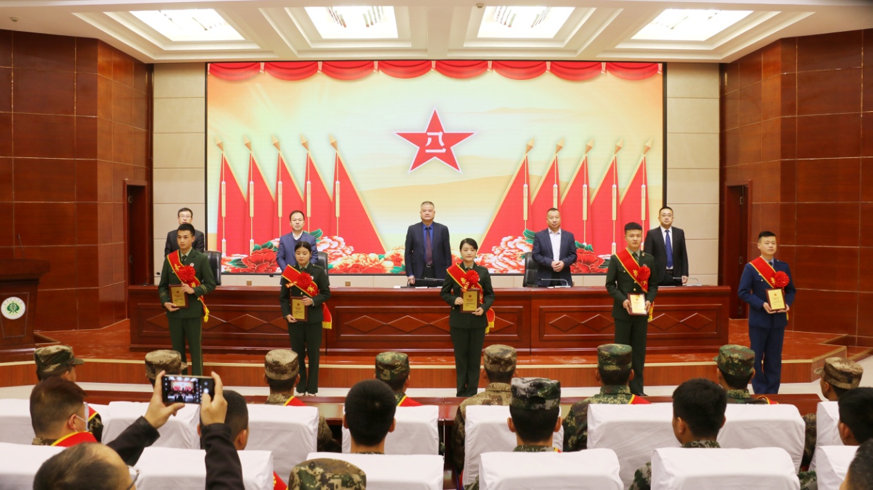 大會上,高鵬堂宣讀了2021年春季入伍學(xué)生名單和近兩年退役復(fù)學(xué)學(xué)生名單;參會領(lǐng)導(dǎo)為應(yīng)征入伍的12名新兵佩戴紅花,贈送紀(jì)念品,為退役復(fù)學(xué)學(xué)生代表佩戴紅花,頒發(fā)榮譽(yù)證書。