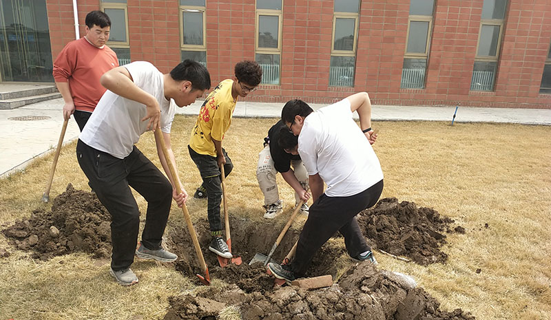 活動中,師生代表熱情高漲、干勁十足,按照專業(yè)人員的植樹指導(dǎo),三人一組,緊密分工協(xié)作、熱情高漲、干勁十足,揮鍬挖窩、扶苗培土、提桶澆水,道道工序細(xì)致認(rèn)真、有條不紊。經(jīng)過師生代表近四小時的忙碌勞動,三百株新栽的樹苗迎風(fēng)挺立,為學(xué)院增添上一抹“新綠”,也將綠色發(fā)展觀念“種”進(jìn)每位師生心中。