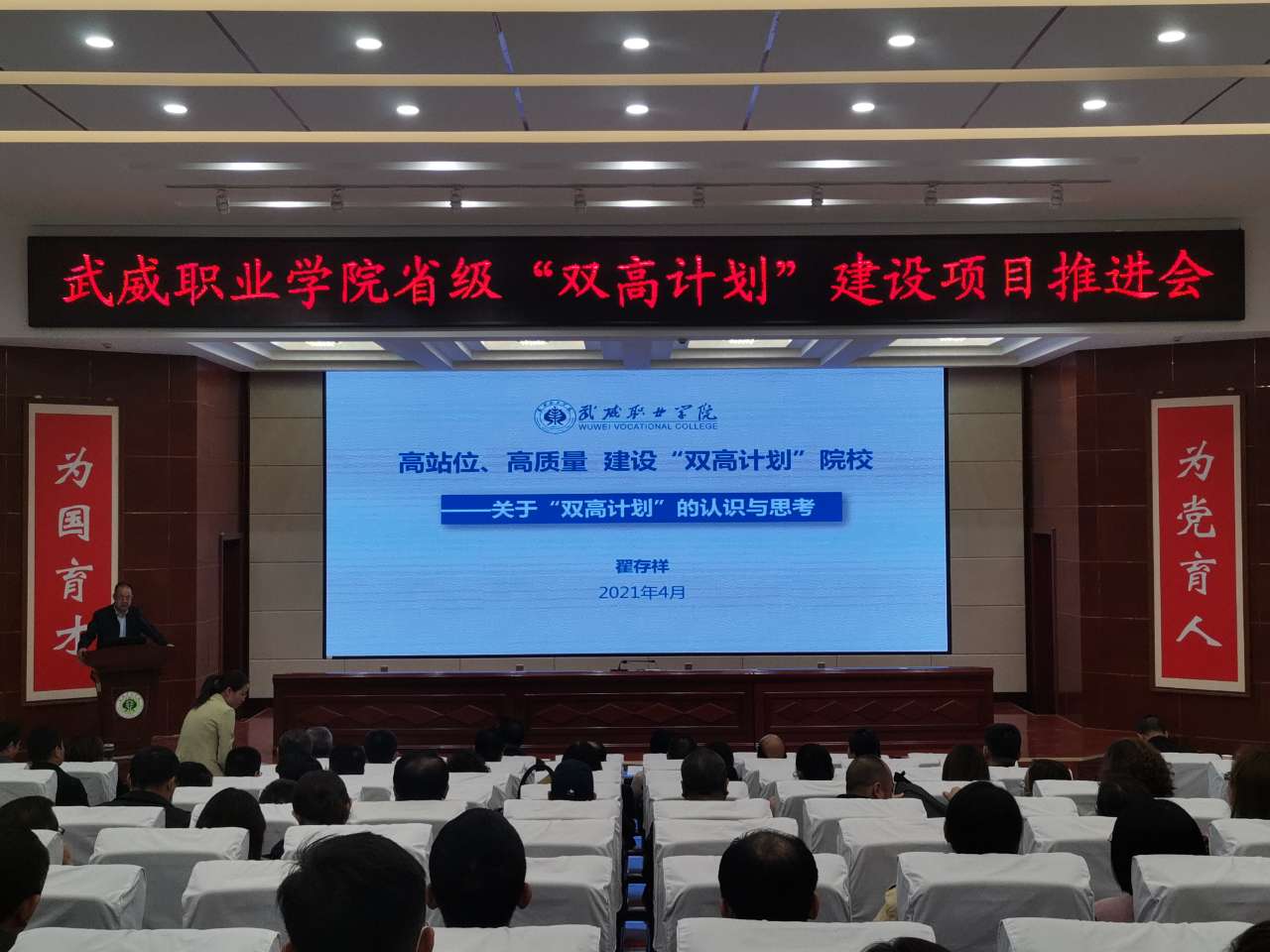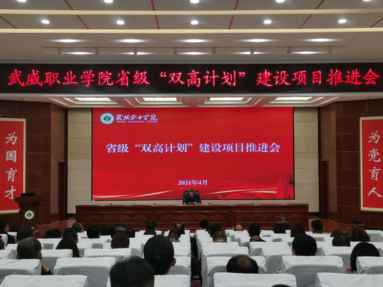 黨委書記、院長(zhǎng)趙明在講話中指出,習(xí)近平總書記的重要指示和李克強(qiáng)總理的批示,為我們奮力構(gòu)建高質(zhì)量職業(yè)教育體系指明了方向。學(xué)院成功入選省級(jí)“雙高計(jì)劃”建設(shè)單位,是學(xué)院發(fā)展歷程上的又一里程碑,為學(xué)院高質(zhì)量發(fā)展注入了新動(dòng)能,帶來了新機(jī)遇。我們既為前期工作成效感到欣喜,也要認(rèn)清當(dāng)前形勢(shì)和未來發(fā)展的壓力與緊迫感,抓住這次契機(jī),提升自身硬實(shí)力和軟實(shí)力。在未來幾年,把“雙高計(jì)劃”建設(shè)作為學(xué)院的中心工作和改革發(fā)展的政治任務(wù)。他提出五點(diǎn)工作要求,一是要充分發(fā)揮黨組織的戰(zhàn)斗堡壘作用。以習(xí)近平新時(shí)代中國(guó)特色社會(huì)主義思想為指導(dǎo),加強(qiáng)黨對(duì)“雙高計(jì)劃”建設(shè)項(xiàng)目的全面領(lǐng)導(dǎo),以一流黨建引領(lǐng)高水平建設(shè),切實(shí)把黨建工作與項(xiàng)目建設(shè)同部署、同落實(shí)、同考評(píng)。二是要加強(qiáng)領(lǐng)導(dǎo),強(qiáng)化責(zé)任?!半p高計(jì)劃”的建設(shè)不能寫在紙上,講在嘴上,而要落實(shí)在行動(dòng)上,所有領(lǐng)導(dǎo)干部要提高擔(dān)當(dāng)意識(shí)、服務(wù)意識(shí)、發(fā)展意識(shí),立足當(dāng)前,著眼長(zhǎng)遠(yuǎn),攻難克堅(jiān),為學(xué)?!半p高”建設(shè)做貢獻(xiàn)。三是要加強(qiáng)融合,提升工作效能。將“雙高計(jì)劃”建設(shè)與提質(zhì)培優(yōu)、技能甘肅等重點(diǎn)工作融入日常,同步謀劃、一體推進(jìn),確保項(xiàng)目建設(shè)有序進(jìn)行。對(duì)標(biāo)國(guó)家高水平院校和高水平專業(yè)群進(jìn)行高標(biāo)準(zhǔn)謀劃,完善高水平成果培育機(jī)制,主動(dòng)提標(biāo)、自我加壓,持續(xù)發(fā)力、持續(xù)攻堅(jiān),形成更多更好的成果。四是要改革創(chuàng)新,加強(qiáng)績(jī)效管理。進(jìn)一步加強(qiáng)制度建設(shè),持續(xù)創(chuàng)新管理體系、完善管理制度、創(chuàng)新管理辦法,規(guī)范辦事流程,完善績(jī)效考核辦法,切實(shí)增強(qiáng)績(jī)效考核的導(dǎo)向性、方向性、引領(lǐng)性,激發(fā)廣大教職員工參與“雙高計(jì)劃”建設(shè)的積極性、主動(dòng)性。五是健全督導(dǎo)機(jī)制,加強(qiáng)監(jiān)管。通過開展定期或不定期、形式多樣的督查工作,切實(shí)加強(qiáng)管理,推動(dòng)任務(wù)落實(shí)。