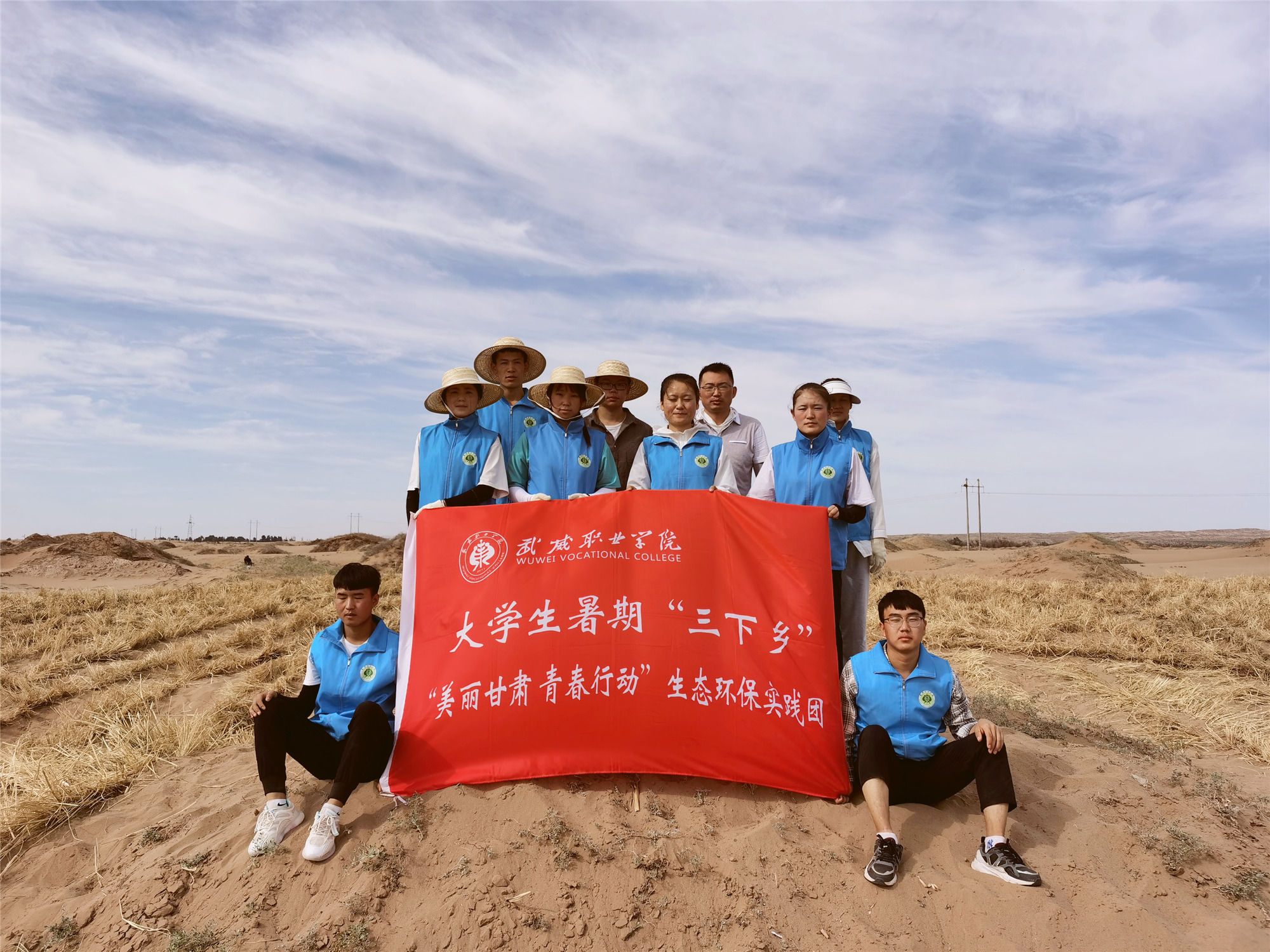 為深入學(xué)習(xí)貫徹習(xí)近平總書記生態(tài)文明建設(shè)重要戰(zhàn)略思想,引導(dǎo)和幫助學(xué)院青年學(xué)生積極融入武威市創(chuàng)建文明城市,以實(shí)際行動(dòng)致力于荒漠化治理、踐行兩山理論。2021年7月15日至21日,在武威職業(yè)學(xué)院團(tuán)委、教學(xué)院系指導(dǎo)下,來自7個(gè)專業(yè)、1名留學(xué)生所組成的“美麗甘肅 青春行動(dòng)”青少年生態(tài)環(huán)保行動(dòng)暑期社會實(shí)踐小隊(duì)奔赴武威市三縣一區(qū)部分地區(qū)進(jìn)行“綠色夢想·戈壁荒漠‘智’富行動(dòng)”暑期社會實(shí)踐。