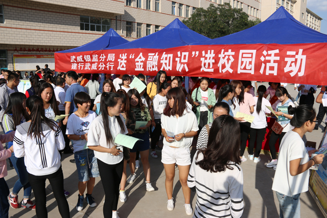 為幫助和引導大學生群體牢固樹立金融安全意識,9月13日下午,武威銀監(jiān)分局聯合建行武威分行在武威職業(yè)學院尚德樓南操場開展了“送金融知識進校園”宣傳活動。