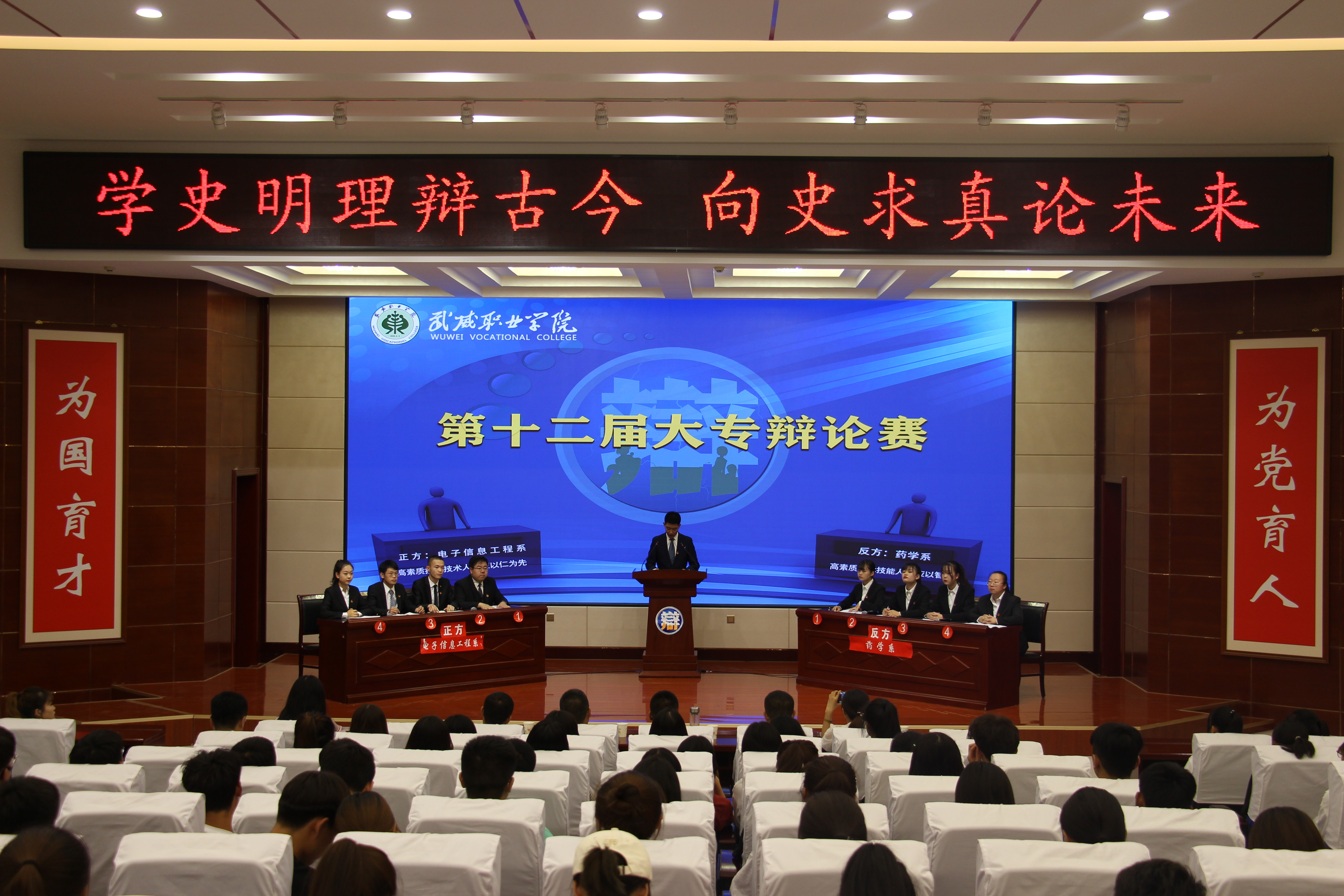 學(xué)史悟踐,思辨增信。第十二屆大專辯論賽正值全院師生深入開展黨史學(xué)習(xí)教育之際,此次大賽充分拓展校園文化活動的思政育人作用,旨在引導(dǎo)廣大青年聽黨話、感黨恩、跟黨走,秉持“厚德長技、守正創(chuàng)新”的校訓(xùn),自覺將“仁”與“智”、“知”與“行”緊密結(jié)合,辯世事求真學(xué)論未來,全面提高能力素質(zhì),努力成為新時代高素質(zhì)的技術(shù)技能人才和勞動者,為打造“技能甘肅”和“雙高院?!苯ㄔO(shè)貢獻力量。