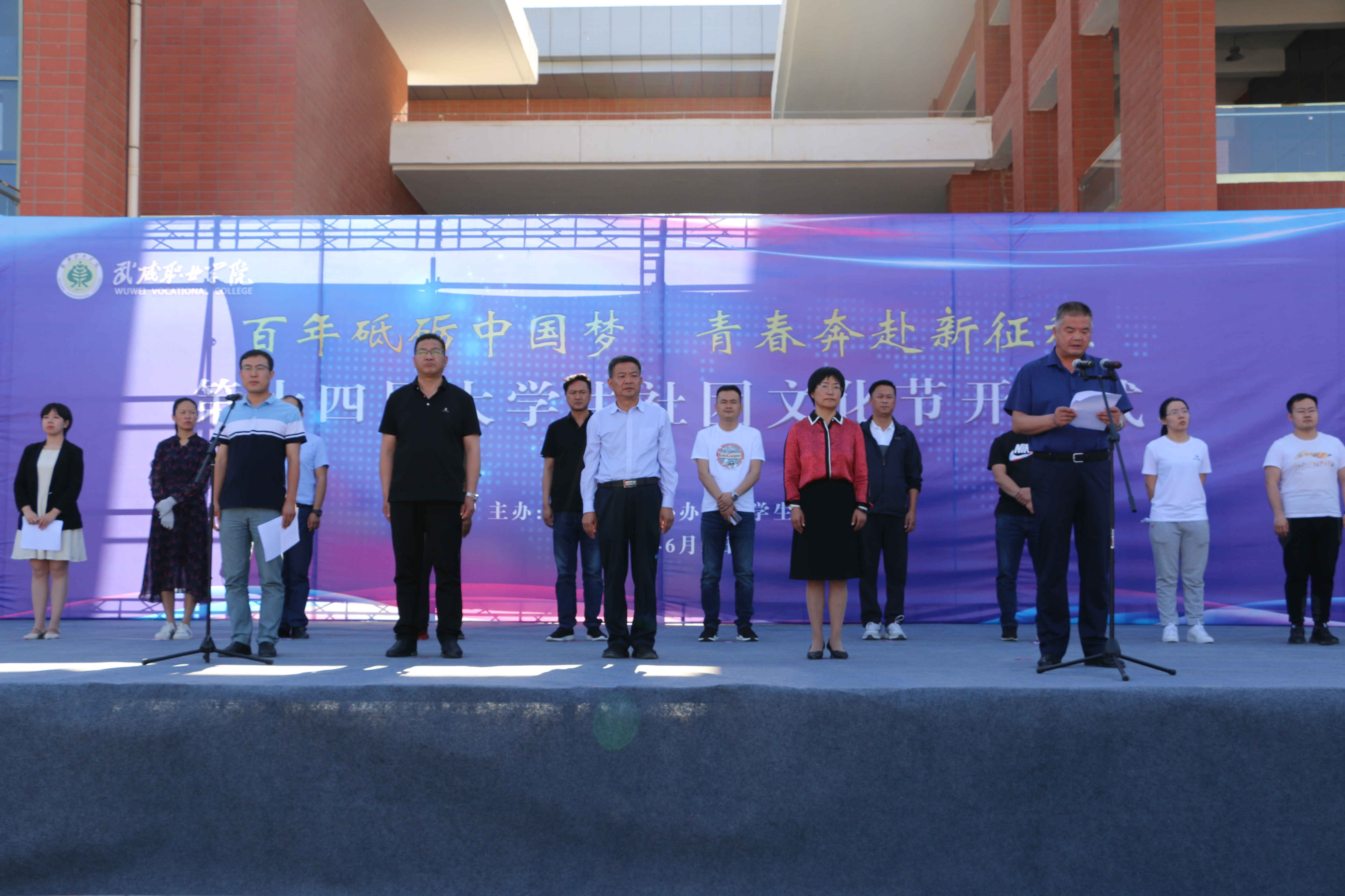 為豐富校園文化生活,推進“雙高計劃”院校建設,促進學生社團健康有序發(fā)展,6月3日下午,學院團委在大學生活動中心廣場舉行了第十四屆大學生社團文化節(jié)開幕式。黨委書記、院長趙明,黨委委員、副院長何毅,黨委委員、紀委書記、監(jiān)察專員陳曉煜、黨委委員、副院長王守云出席開幕式,各院系團委書記、各學生社團指導教師及2000余名社團成員參加活動。開幕式由學生工作處、團委負責人高鵬堂主持。
