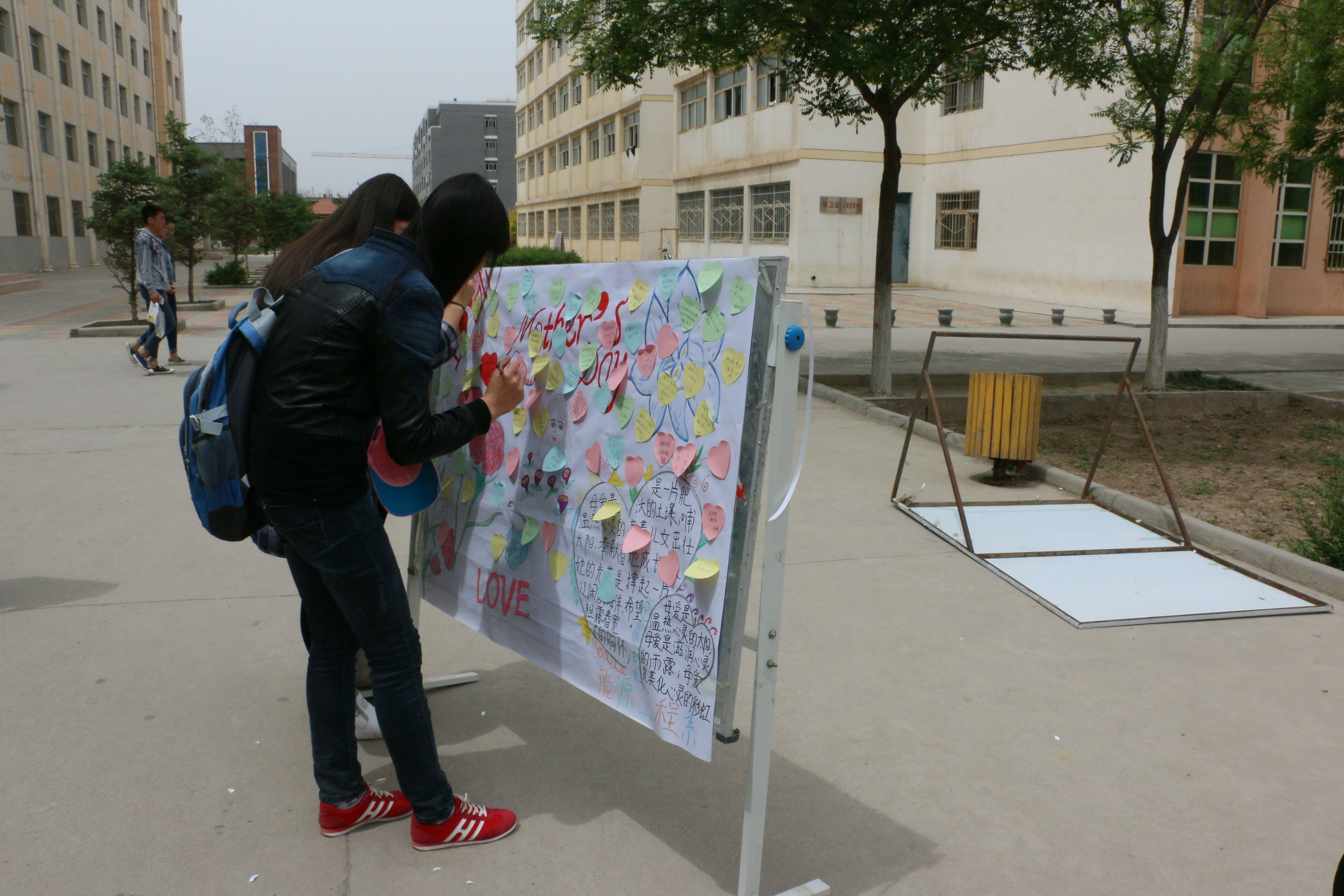 今天早晨十一點(diǎn)左右,能源系全體學(xué)生會(huì)成員以為這次的活動(dòng)準(zhǔn)備好了一切,有母親節(jié)的海報(bào)、母親節(jié)許愿瓶、對媽媽想說的話的展板、以及自己對媽媽祝福的簽名