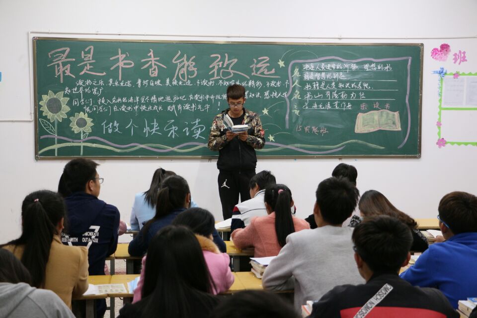 本次主題班會由各班班主任主持召開,同學(xué)們都積極的上臺向大家推薦了自己最喜歡看的書目。15級光伏班的蔡玉萍同學(xué),為我們講述了冰心的散文集《夢》的故事,博得了大家的陣陣掌聲。