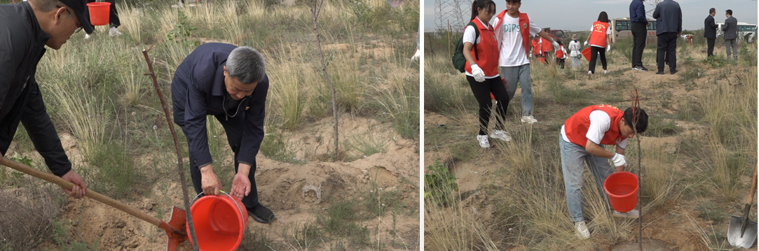 揭牌儀式后,師生志愿者在學(xué)院認(rèn)建的800畝公益林進(jìn)行了平整樹坑、澆水、清理雜物等勞動。