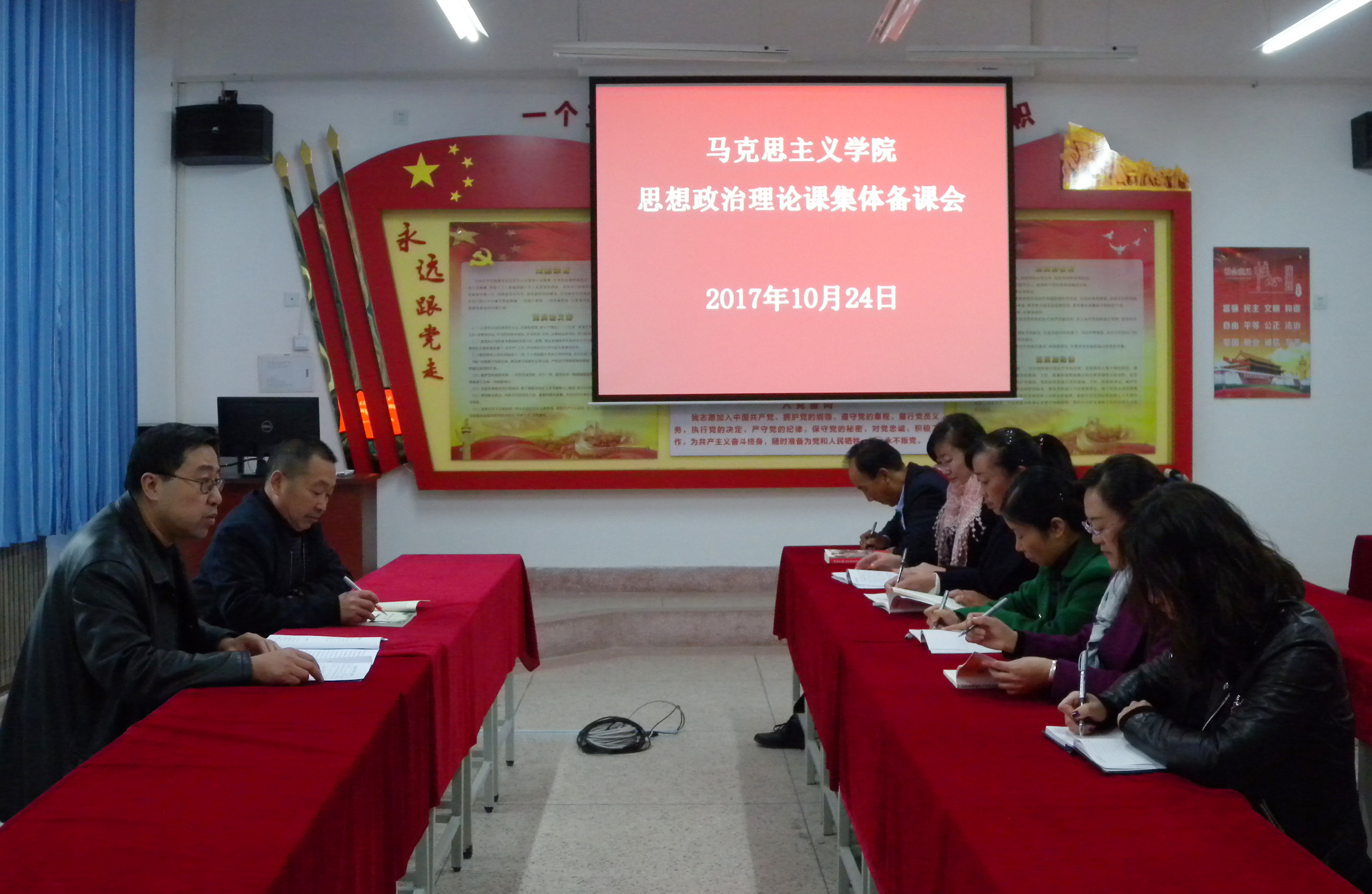 為深入學習十九大會議精神,認真貫徹全國全省高校思想政治工作會議精神,打贏我院思政課質(zhì)量年建設的攻堅戰(zhàn),提高我院思政課教學質(zhì)量和水平,10月24日下午,馬克思主義學院在勵勤樓209會議室召開了思政課集體備課會。會議由馬克思主義學院副院長胡靜峰主持,全體思政課專兼職教師參加了備課會。