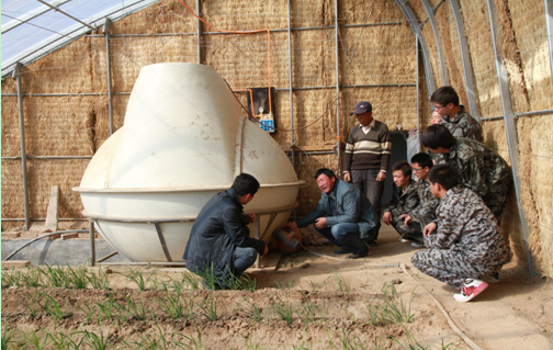 能源工程系專業(yè)教師為農(nóng)戶就沼氣池產(chǎn)生的沼渣、沼液、增溫燈產(chǎn)生的二氧化碳當做溫室內(nèi)蔬菜生長肥料與傳統(tǒng)化肥、農(nóng)藥相比產(chǎn)生的經(jīng)濟效益進行講解,指導農(nóng)戶充分利用沼氣池產(chǎn)生的沼渣、沼機及氣肥提高大棚經(jīng)濟效益。