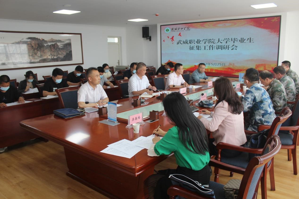 5月25日下午,武威軍分區(qū)大校范玉芳司令員帶領(lǐng)軍地工作組一行6人,來學(xué)校調(diào)研指導(dǎo)大學(xué)畢業(yè)生征兵工作。學(xué)校黨委委員、副校長王守云共同調(diào)研,學(xué)校征兵工作站工作人員、輔導(dǎo)員和畢業(yè)班班主任代表參加了匯報(bào)會。