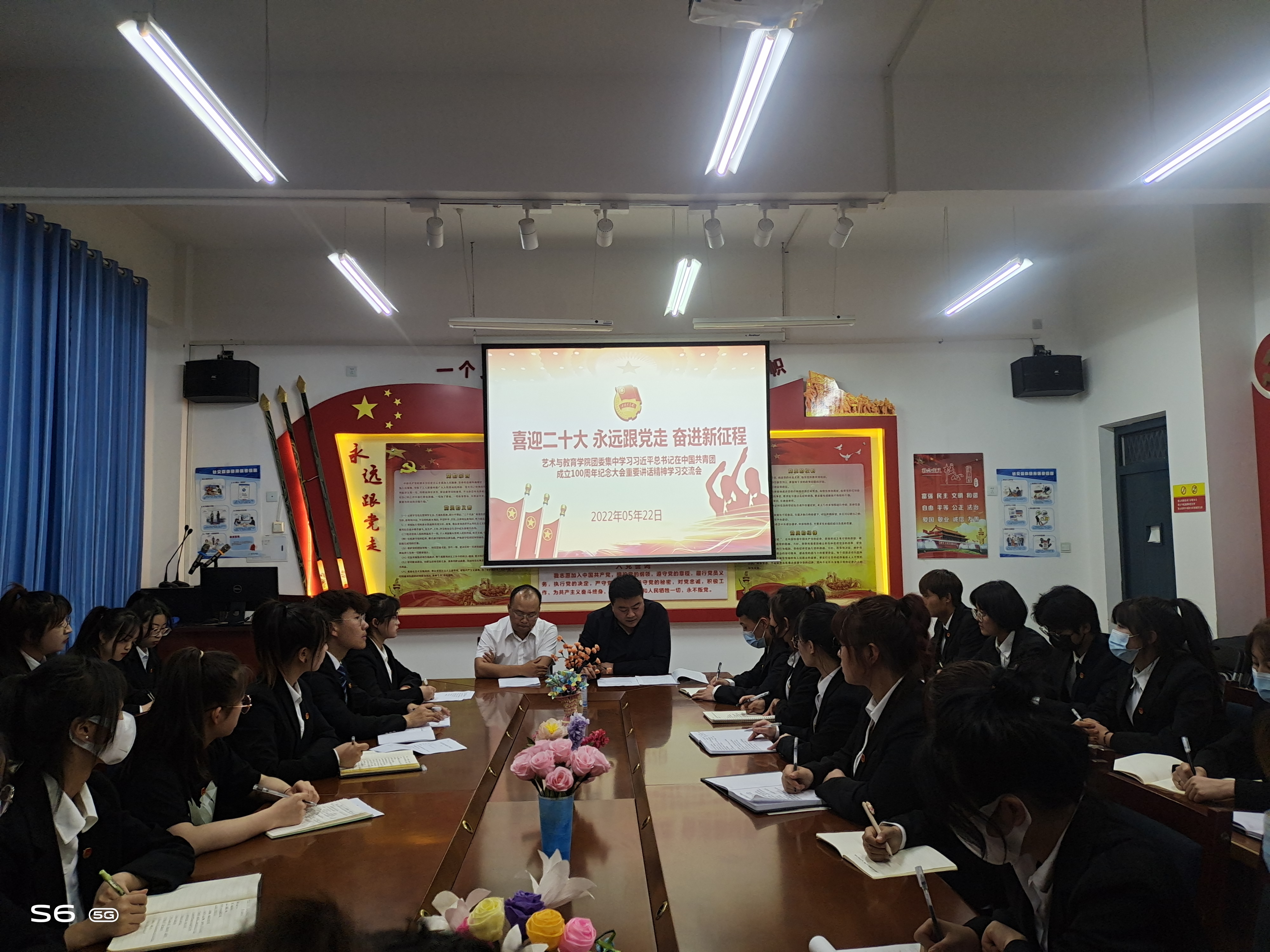 2022年5月22日晚,藝術與教育學院團委以“喜迎二十大,奮進新征程,永遠跟黨走”為主題,開展習近平總書記在慶祝中國共產(chǎn)主義青年團成立100周年大會上的重要講話精神學習研討交流會,參會人員由藝術與教育學院副院長李欣,團委書記唐鑫基,20、21級各班團支部書記及優(yōu)秀團員代表、預備黨員、入黨積極分子和入團積極分子代表組成。