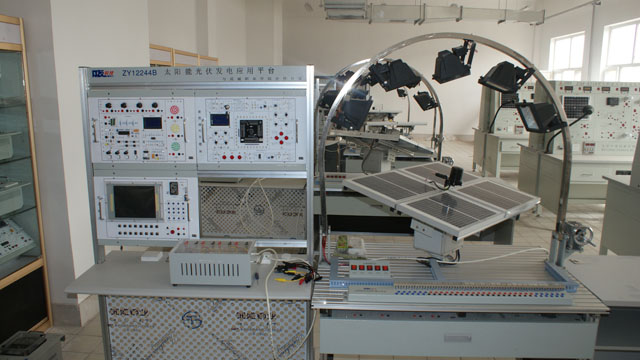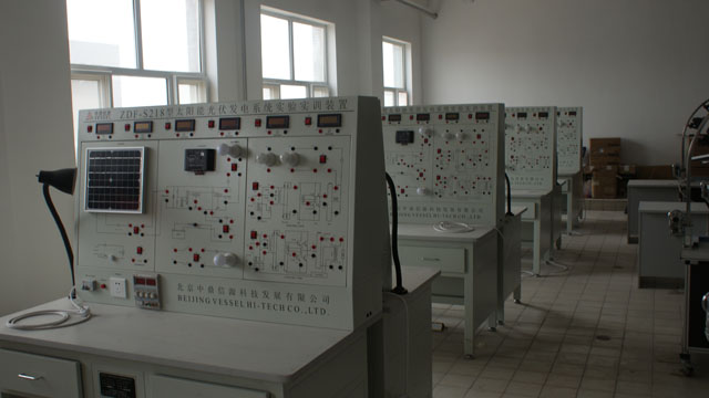 新能源實(shí)訓(xùn)中心建有光伏發(fā)電實(shí)訓(xùn)室和農(nóng)村能源實(shí)訓(xùn)室,可開(kāi)設(shè)光伏發(fā)電模擬實(shí)訓(xùn)、光伏發(fā)電系統(tǒng)原理實(shí)訓(xùn)、風(fēng)光互補(bǔ)發(fā)電實(shí)訓(xùn)、家用熱水器安裝實(shí)訓(xùn)、太陽(yáng)能集熱管性能實(shí)訓(xùn)、太陽(yáng)能輻射觀測(cè)、氣象數(shù)據(jù)測(cè)試、供配電技術(shù)實(shí)訓(xùn)、電力系統(tǒng)機(jī)電保護(hù)實(shí)訓(xùn)、沼氣發(fā)酵等實(shí)訓(xùn)項(xiàng)目,配有二十五臺(tái)計(jì)算機(jī),可進(jìn)行仿真模擬實(shí)驗(yàn)與實(shí)訓(xùn),其中光伏發(fā)電實(shí)訓(xùn)平臺(tái)是由我院與湖北眾友科技實(shí)業(yè)股份有限公司共同開(kāi)發(fā)研制,實(shí)訓(xùn)室設(shè)計(jì)理念先進(jìn)、設(shè)施設(shè)備齊全,達(dá)到了省內(nèi)同類高職院校能源類專業(yè)的一流水平。