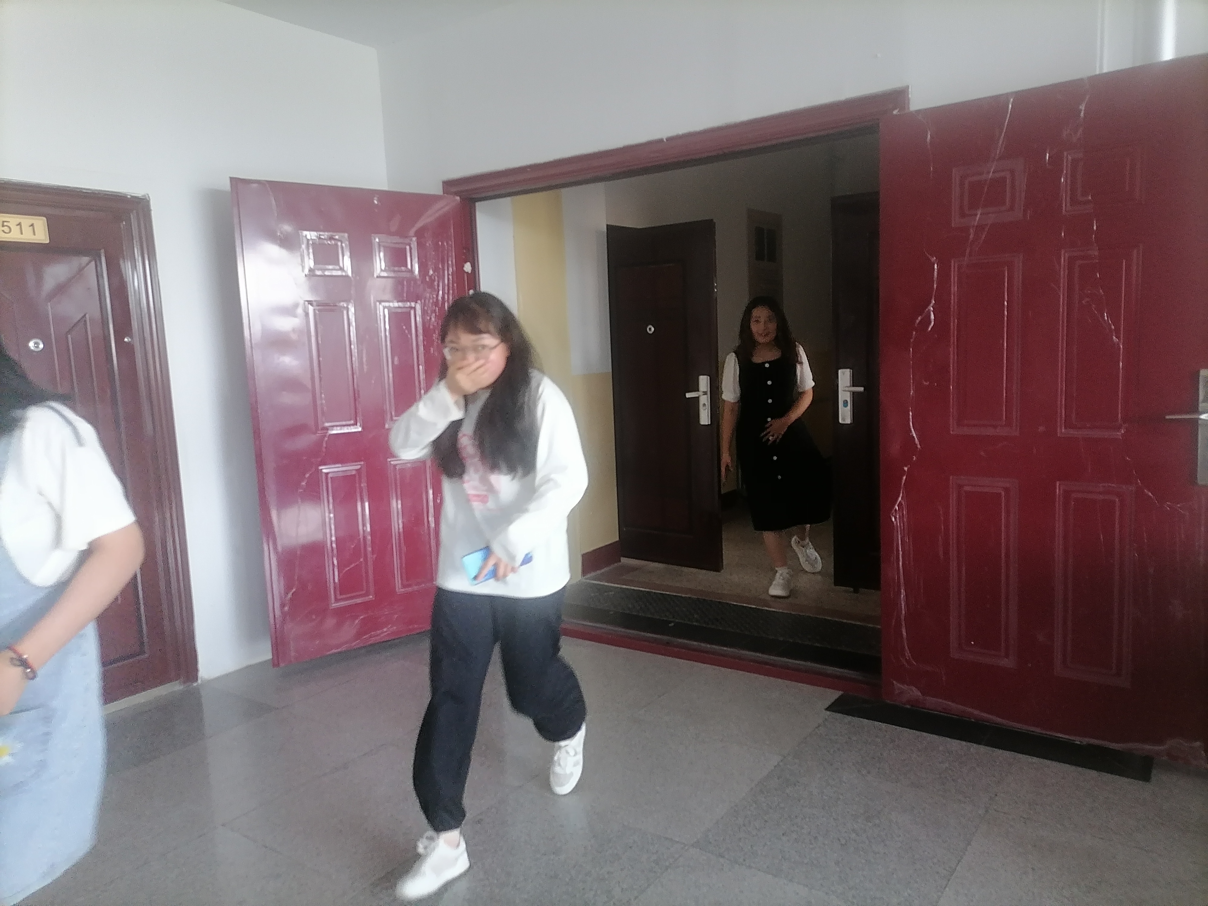 ? ?下午16:50隨著警報(bào)的響起,煙霧彈的點(diǎn)燃,上課老師組織學(xué)生疏散,各班學(xué)生在老師們的指揮下,按照指定路線(xiàn),貓著腰,用手、袖口捂著嘴鼻迅速有序地進(jìn)行緊急疏散,全體師生撤離到安全地帶。為保證所有同學(xué)安全撤離,學(xué)生會(huì)成員迅速清點(diǎn)了各班級(jí)人數(shù),并像楊老師匯報(bào)。