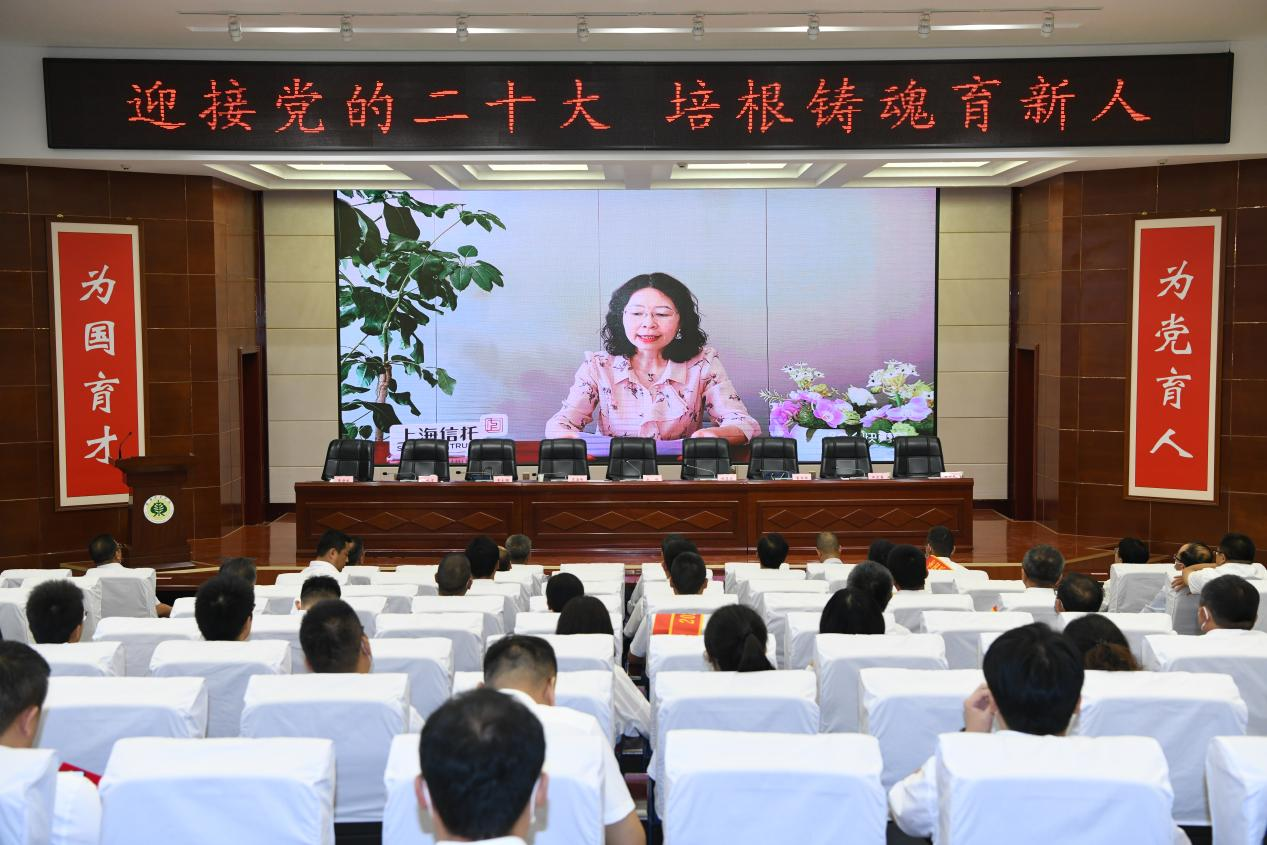 參會領(lǐng)導(dǎo)向獲得2022年“上善·低碳新能源獎(jiǎng)教金”的獲獎(jiǎng)人員頒發(fā)了證書?!吧仙啤さ吞夹履茉椽?jiǎng)教金”是上海國際信托有限公司為獎(jiǎng)勵(lì)學(xué)校教師在推動(dòng)綠色能源領(lǐng)域職業(yè)教育中作出的貢獻(xiàn),在學(xué)校設(shè)立的捐贈資金。大會現(xiàn)場播放了上海國際信托有限公司張曉軍副總經(jīng)理講話視頻。