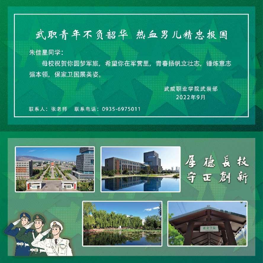 金鑫代表涼州區(qū)人武部和兵役機關(guān),感謝武威職業(yè)學(xué)院多年來一直對征兵工作的大力支持,感謝學(xué)校為部隊輸送優(yōu)秀青年,并要求入伍大學(xué)生,嚴格訓(xùn)練,做好從學(xué)生到戰(zhàn)士的迅速轉(zhuǎn)變,早日成為一名合格的人民子弟兵。