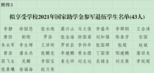 關(guān)于補(bǔ)發(fā)退役學(xué)生專項(xiàng)助學(xué)金的公示