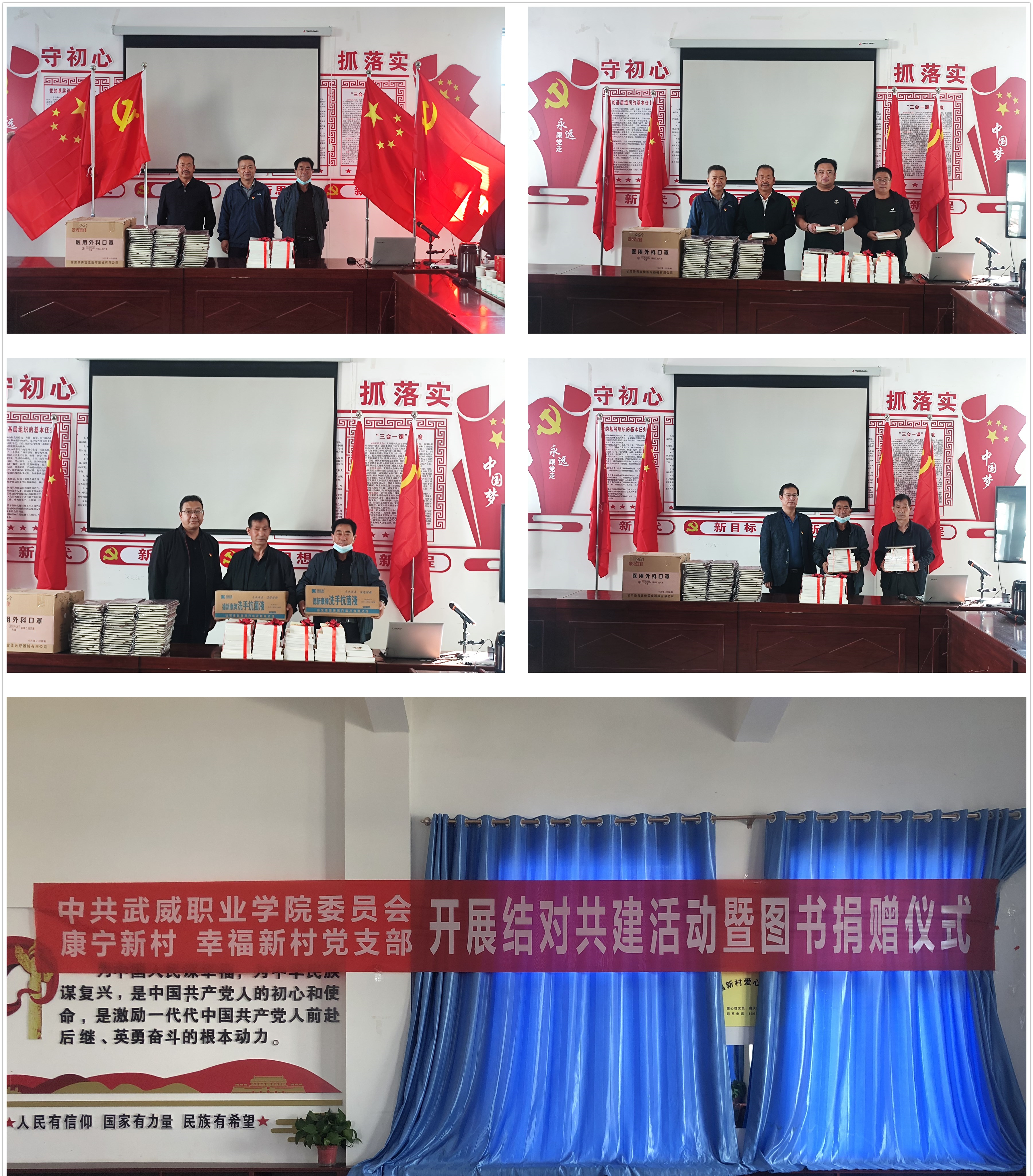 為進一步加強幫扶村基層黨組織建設,助推鄉(xiāng)村振興各項事業(yè)發(fā)展,9月22日,學校黨委書記、校長趙明,黨委委員、紀委書記、監(jiān)察專員陳曉煜,黨委委員、副校長張開禮等一行到古浪縣橫梁鄉(xiāng)康寧新村和幸福新村開展結(jié)對共建活動暨圖書捐贈儀式。