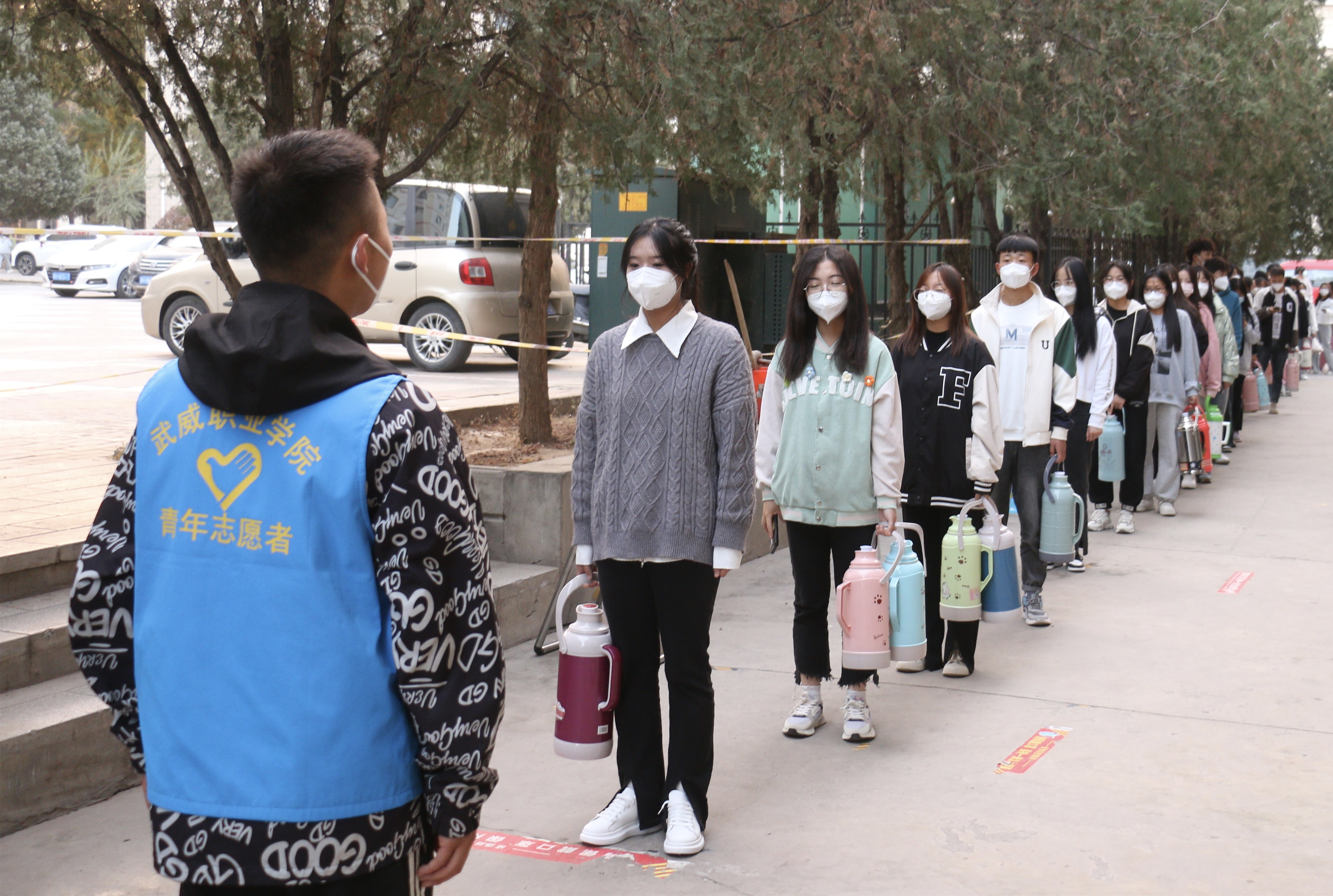 “您好,請(qǐng)測(cè)量體溫、掃場(chǎng)所碼。”“請(qǐng)佩戴好口罩,有序排隊(duì)……”校學(xué)生會(huì)的陶玲在學(xué)校食堂門(mén)口值班時(shí)不停地提醒著進(jìn)出打飯的同學(xué)們,這也是她參加校園疫情防控以來(lái)每天講得最多的話。自10月13日涼州區(qū)實(shí)施臨時(shí)管控以來(lái),學(xué)校各學(xué)生組織聞令而動(dòng),身穿“藍(lán)馬甲”積極投身校園疫情防控一線,用奉獻(xiàn)溫暖了這個(gè)秋天。