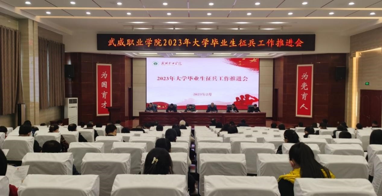 2月10日下午,學校2023年大學畢業(yè)生征兵工作推進會在菁英廳召開,學校黨委委員、副校長王守云,涼州區(qū)人武部中校副部長楊海生出席會議。