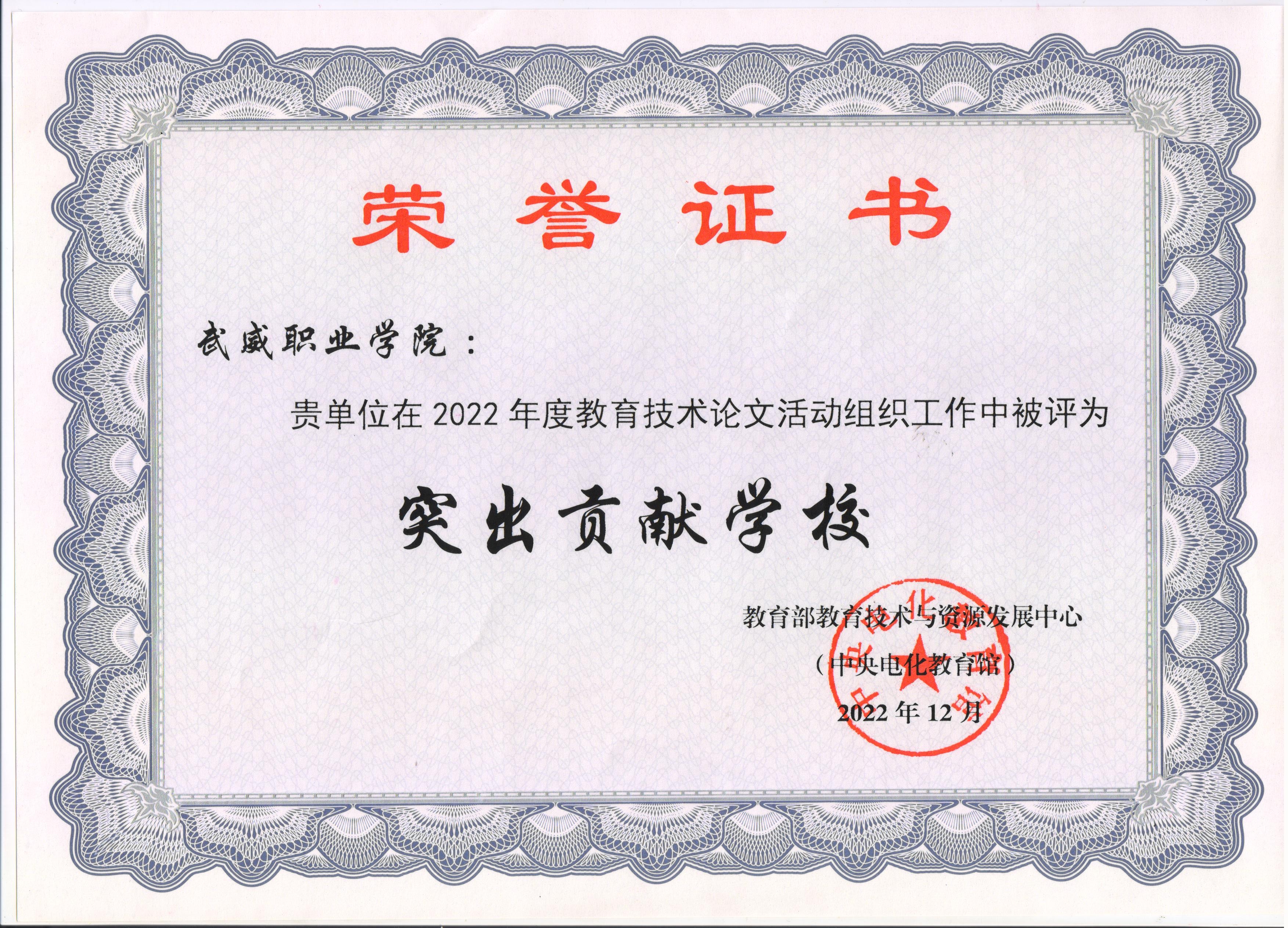 學(xué)校在2022年全國師生信息素養(yǎng)提升實(shí)踐活動中被評為教育技術(shù)論文組織突出貢獻(xiàn)學(xué)校