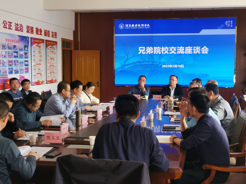 3月10日,學校黨委副書記翟存祥,黨委委員、副校長張開禮一行赴酒泉職業(yè)技術學院,就“雙高計劃”學校建設、本科層次職業(yè)學校申辦、產(chǎn)教融合、社會服務等工作進行學習交流。酒泉職業(yè)技術學院黨委副書記許軍及相關部門負責人陪同考察,并組織召開交流座談會。