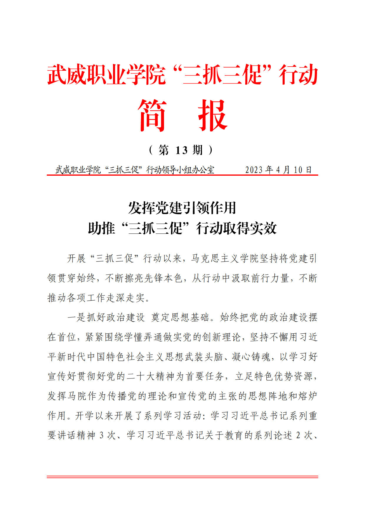 簡(jiǎn)報(bào)第13期:發(fā)揮黨建引領(lǐng)作用 助推“三抓三促”行動(dòng)取得實(shí)效