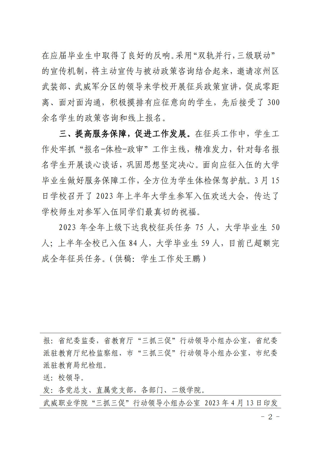 簡(jiǎn)報(bào)第14期:抓執(zhí)行促落實(shí) 多措并舉見(jiàn)成效 學(xué)校2023年春季征兵任務(wù)超額完成