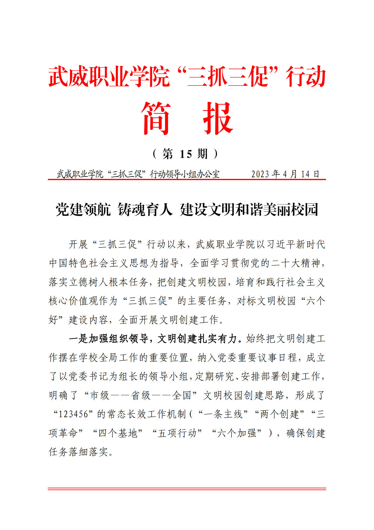 簡(jiǎn)報(bào)第15期:黨建領(lǐng)航 鑄魂育人 建設(shè)文明和諧美麗校園