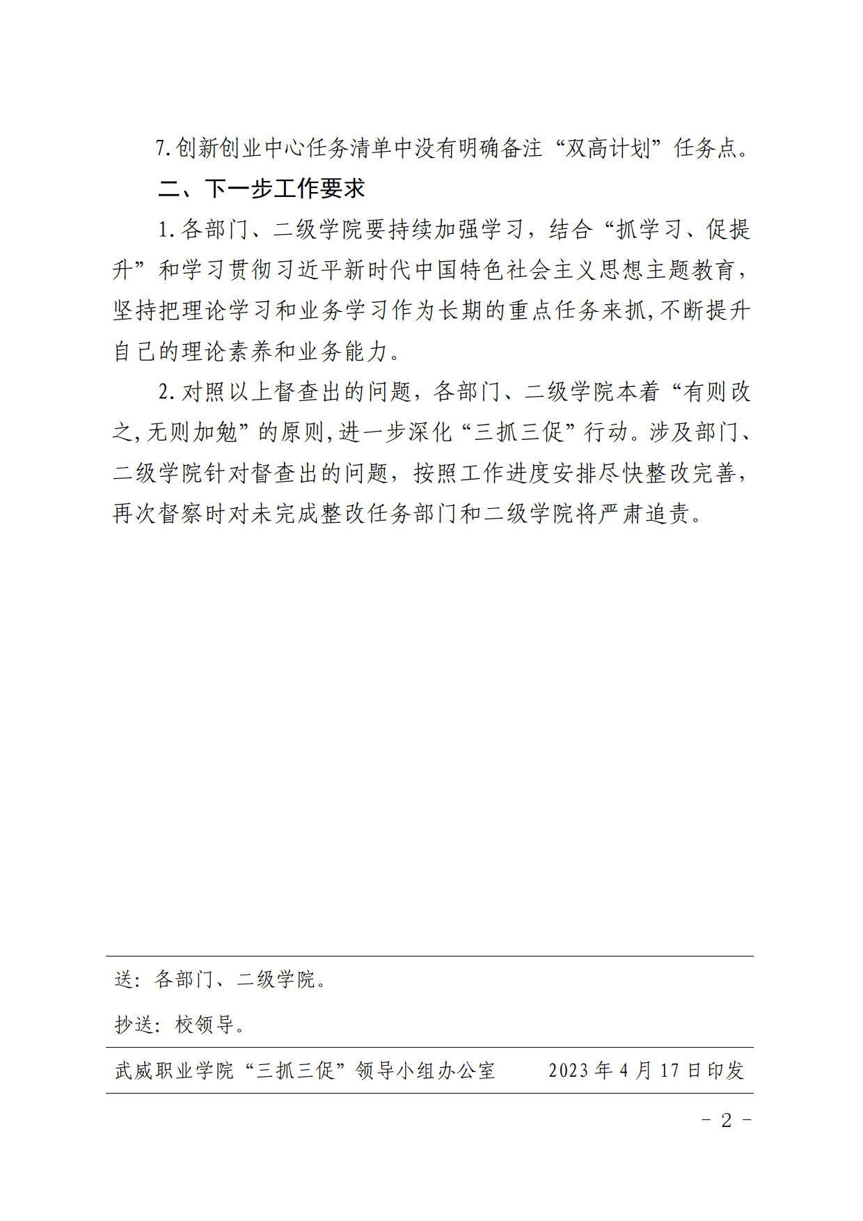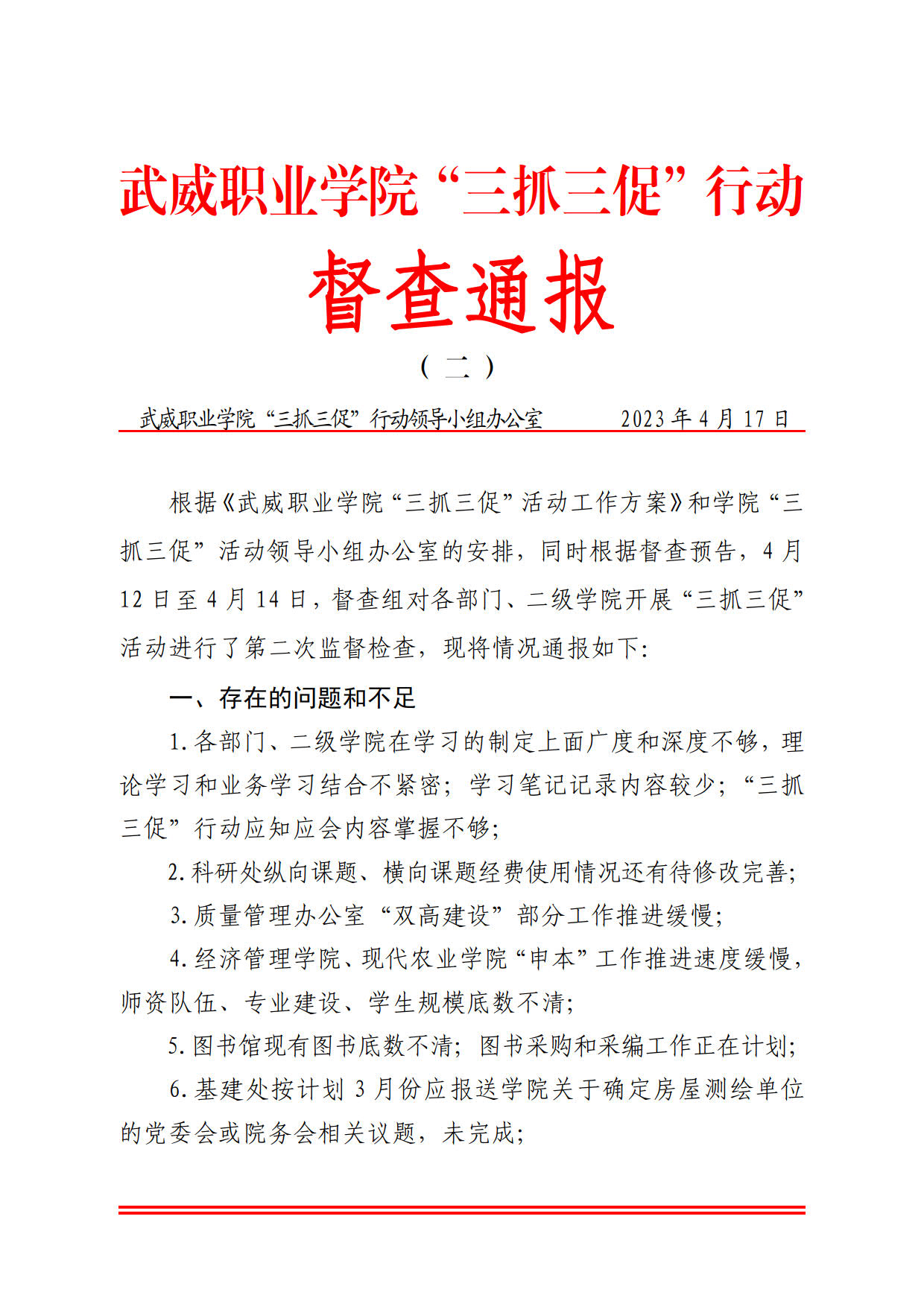 武威職業(yè)學(xué)院“三抓三促”行動督查通報( 二 )