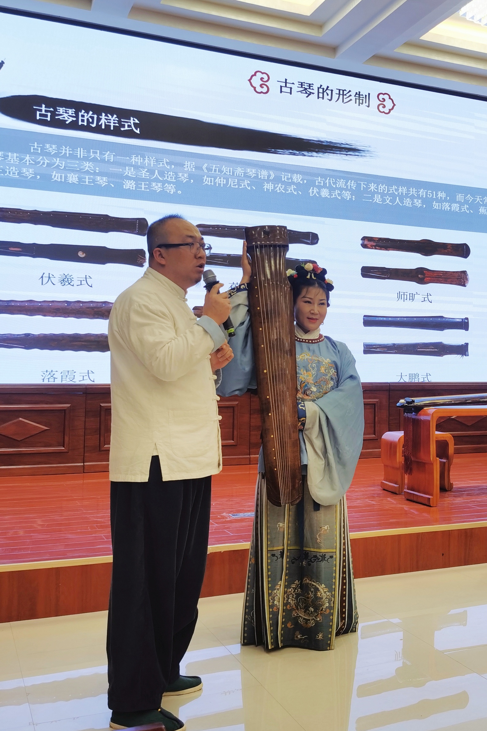 5月11日,學(xué)校傳統(tǒng)文化體驗(yàn)中心、非遺體驗(yàn)中心邀請(qǐng)到了移云齋涼州分館館長(zhǎng)、古琴講師霍宏昌在菁英廳做了《古琴文化》專題講座和古琴名曲演奏。霍宏昌從一曲《長(zhǎng)亭怨慢》開(kāi)場(chǎng),古琴的古樸之聲,安靜、深沉、意味悠長(zhǎng),讓聽(tīng)者瞬間感受到了內(nèi)心的沉靜。在講解時(shí),他以影視劇中的琴人為切入點(diǎn),詳細(xì)地闡述了古琴的歷史和發(fā)展,讓同學(xué)們了解到古琴的構(gòu)造、樣式、音色和記譜法等,并在現(xiàn)場(chǎng)彈奏了古琴名曲《酒狂》和《流水》,通過(guò)感官感受加深大家對(duì)古琴的印象。活動(dòng)在直播武威微信公眾號(hào)上同步直播,在線觀看人數(shù)達(dá)到1.62萬(wàn)人。