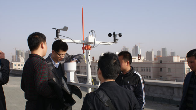 本次培訓旨在提高教師對新進實驗設備的熟悉程度,解答實驗過程存在的問題。設備廠家北京中鼎科技有限公司的技術人員為各位參加培訓的老師進行了講解和介紹。此次新進的實驗設施包括太陽能光伏發(fā)電應用平臺、太陽能光熱集熱器、氣象監(jiān)控站、太陽輻射能測量平臺、集熱管性能檢測平臺等專業(yè)相關的實驗設備。廠家的技術人員演示了太陽能光伏發(fā)電設備在太陽能蓄電池、太陽能離網(wǎng)并網(wǎng)發(fā)電方面的應用,并展示了氣象監(jiān)控站實時監(jiān)控的氣象數(shù)據(jù)。老師們在技術人員的帶領下來到了氣象監(jiān)控設備及太陽能輻射能測量設備安放的平臺,近距離的觀察了監(jiān)控設備的安裝和運行,并詢問了監(jiān)控設備的使用和維護的注意事項。