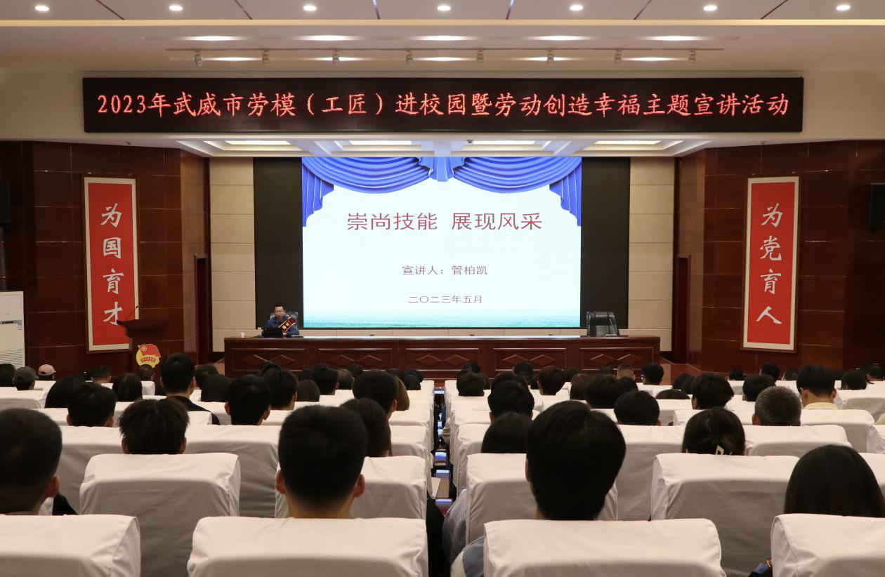 為貫徹落實(shí)全國職業(yè)教育大會精神,進(jìn)一步在師生中大力弘揚(yáng)勞模精神、勞動精神和工匠精神,不斷推動我?!疤豳|(zhì)培優(yōu)”“技能甘肅”和“雙高計(jì)劃”項(xiàng)目建設(shè)工作。5月15日上午,學(xué)校在學(xué)生發(fā)展中心菁英廳舉辦勞模(工匠)進(jìn)校園暨勞動創(chuàng)造幸福主題宣講活動,邀請“甘肅省勞動模范”“甘肅省青年崗位能手”獲得者、甘肅電投武威熱電公司電氣檢修班班長、安全監(jiān)察主管管柏凱作題為《崇尚技能 展現(xiàn)風(fēng)采》的專題報(bào)告。報(bào)告會由學(xué)校工會主席金玉龍主持,各相關(guān)部門負(fù)責(zé)人、省級“雙高計(jì)劃”高水平專業(yè)群師生代表共220人參加報(bào)告會。