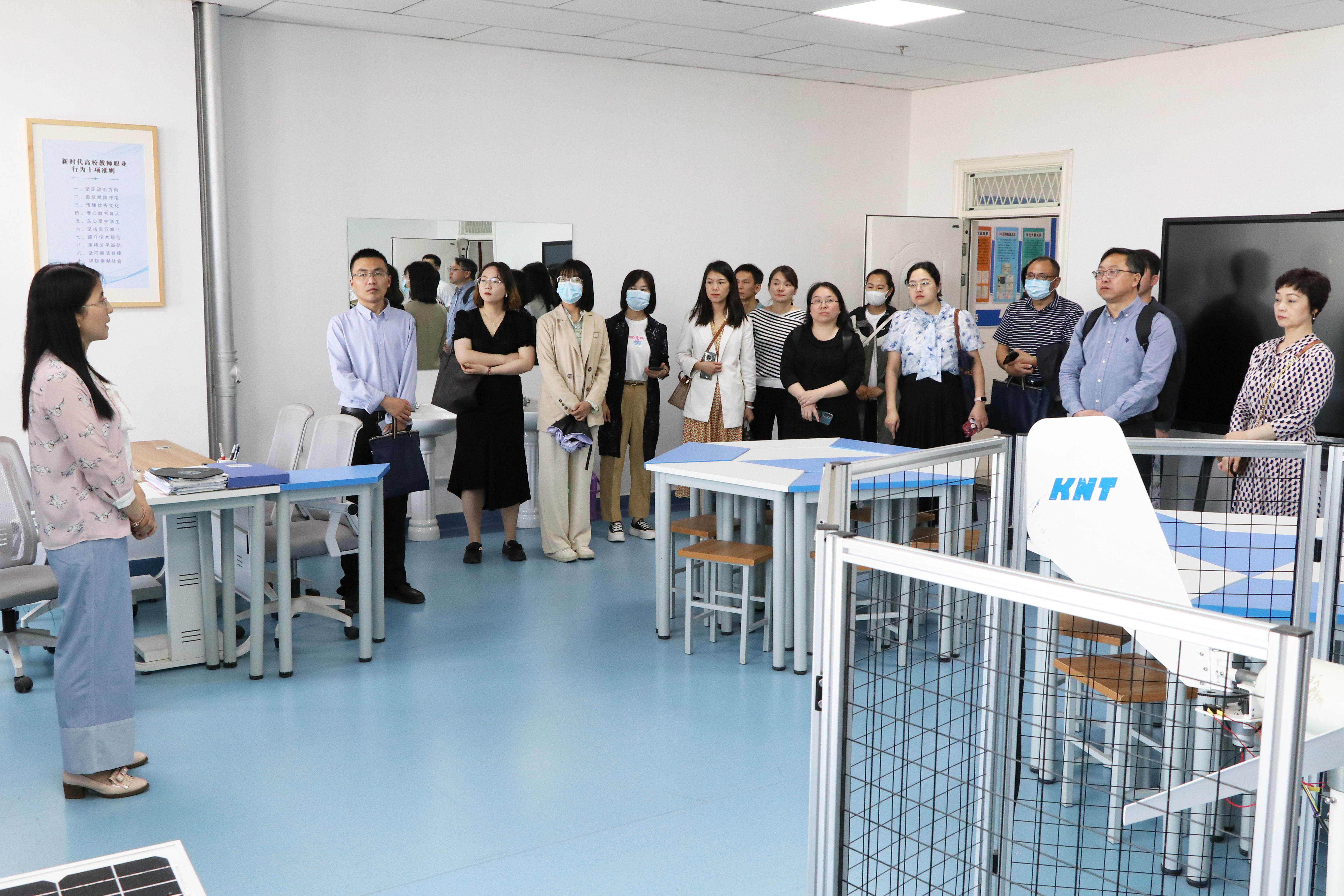 參觀研學(xué)成員一行參觀了中科低碳新能源技術(shù)學(xué)院實(shí)驗(yàn)實(shí)訓(xùn)室、雙創(chuàng)中心和體育場等地。王永緒介紹了學(xué)校的辦學(xué)歷史、辦學(xué)條件、專業(yè)建設(shè)、教育教學(xué)成果、國際交流合作以及學(xué)校發(fā)展愿景等情況。