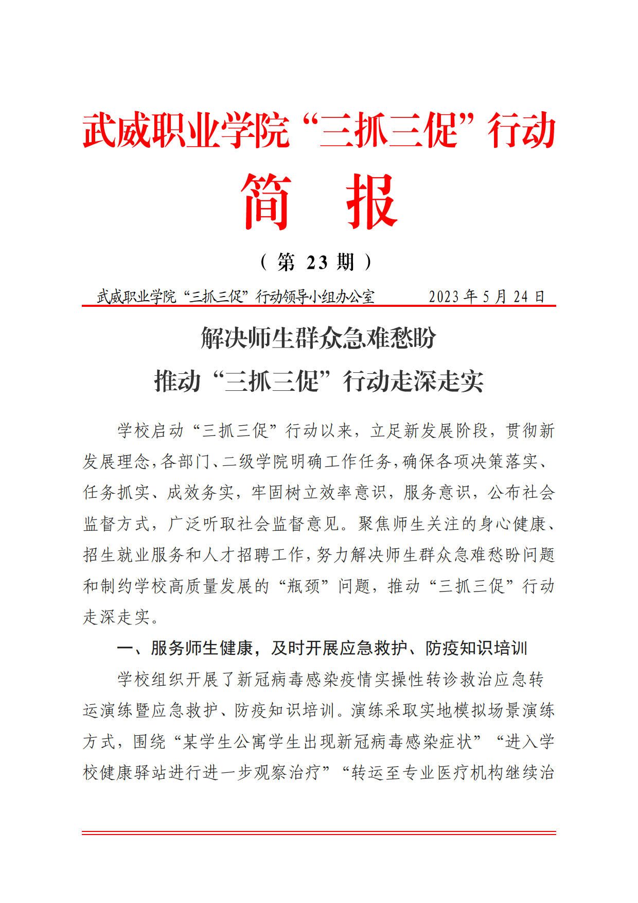 簡報第23期:解決師生群眾急難愁盼 推動“三抓三促”行動走深走實(shí)