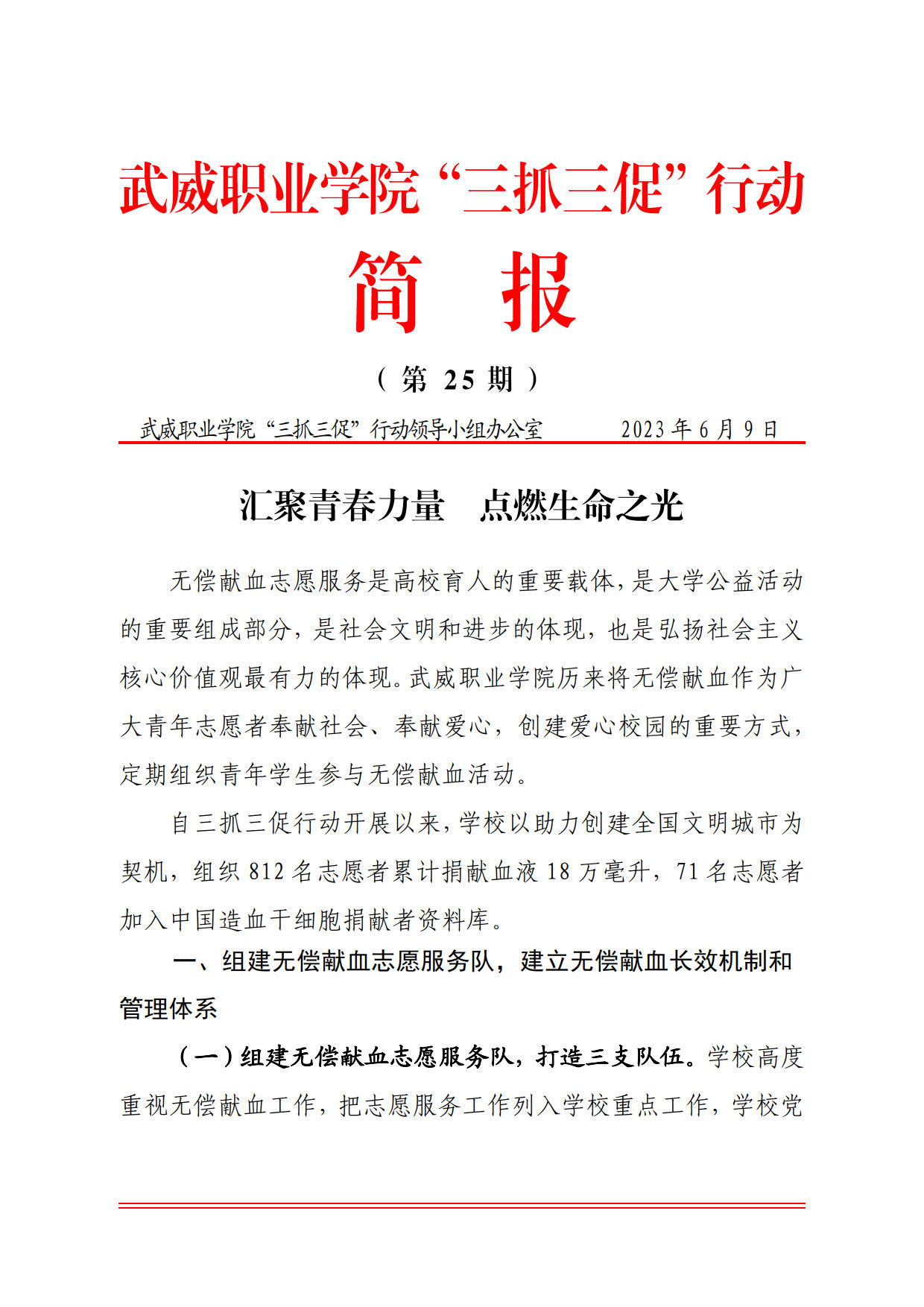 簡報(bào)第25期:匯聚青春力量 點(diǎn)燃生命之光