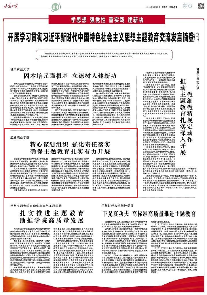 甘肅日報刊登學(xué)院在省屬高校主題教育工作座談會上的發(fā)言