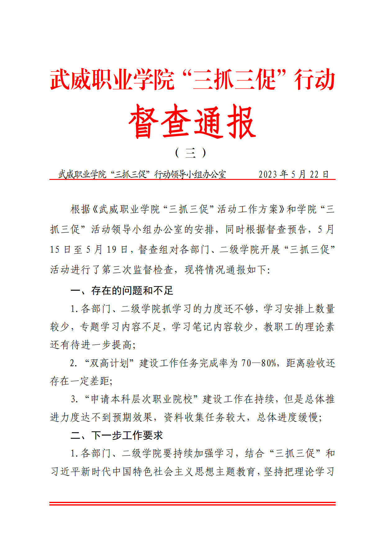 武威職業(yè)學(xué)院“三抓三促”行動(dòng)